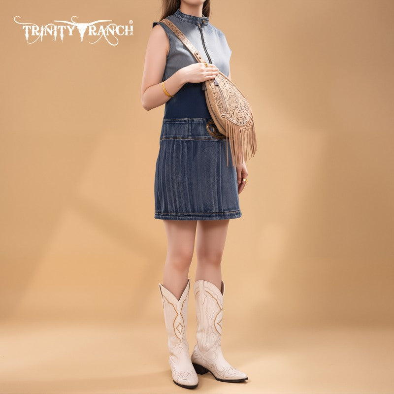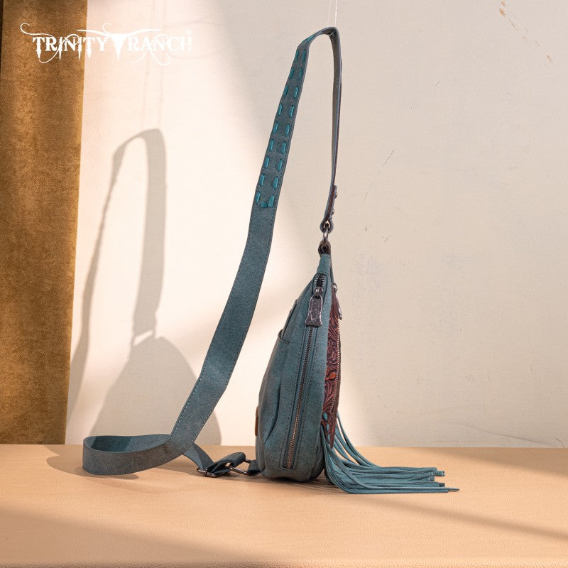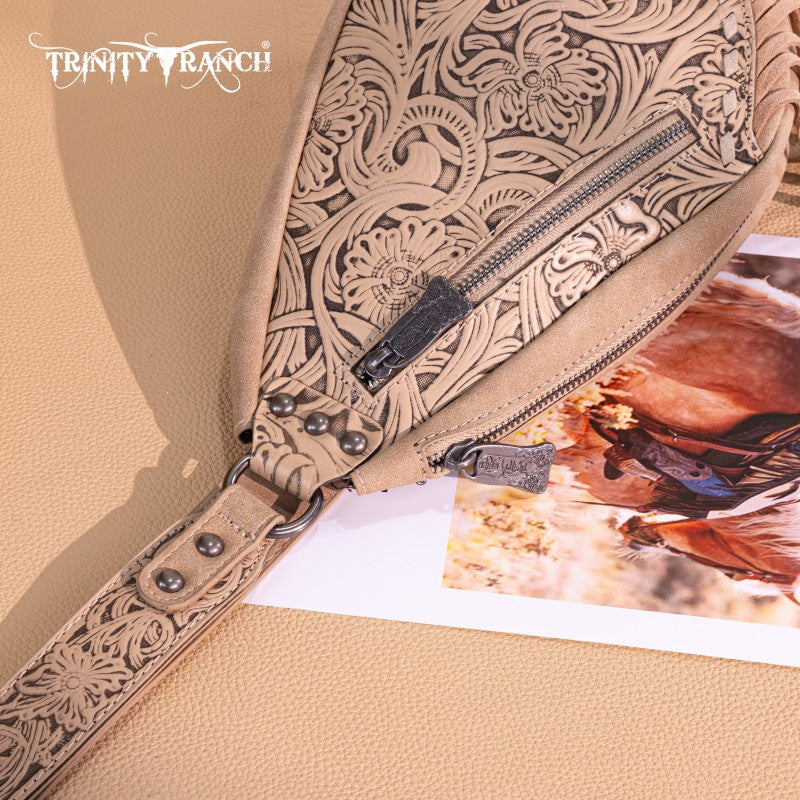 Trinity Ranch Floral Tooled Fringe Sling Bag