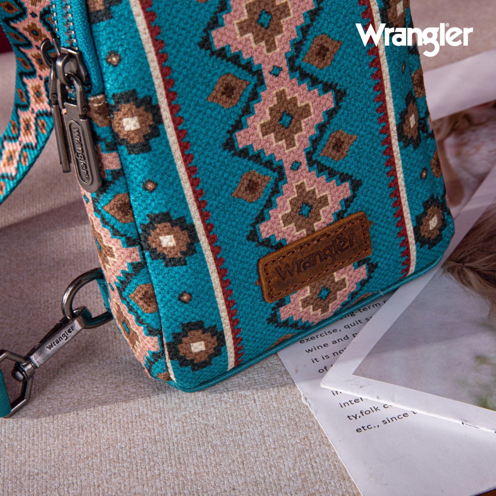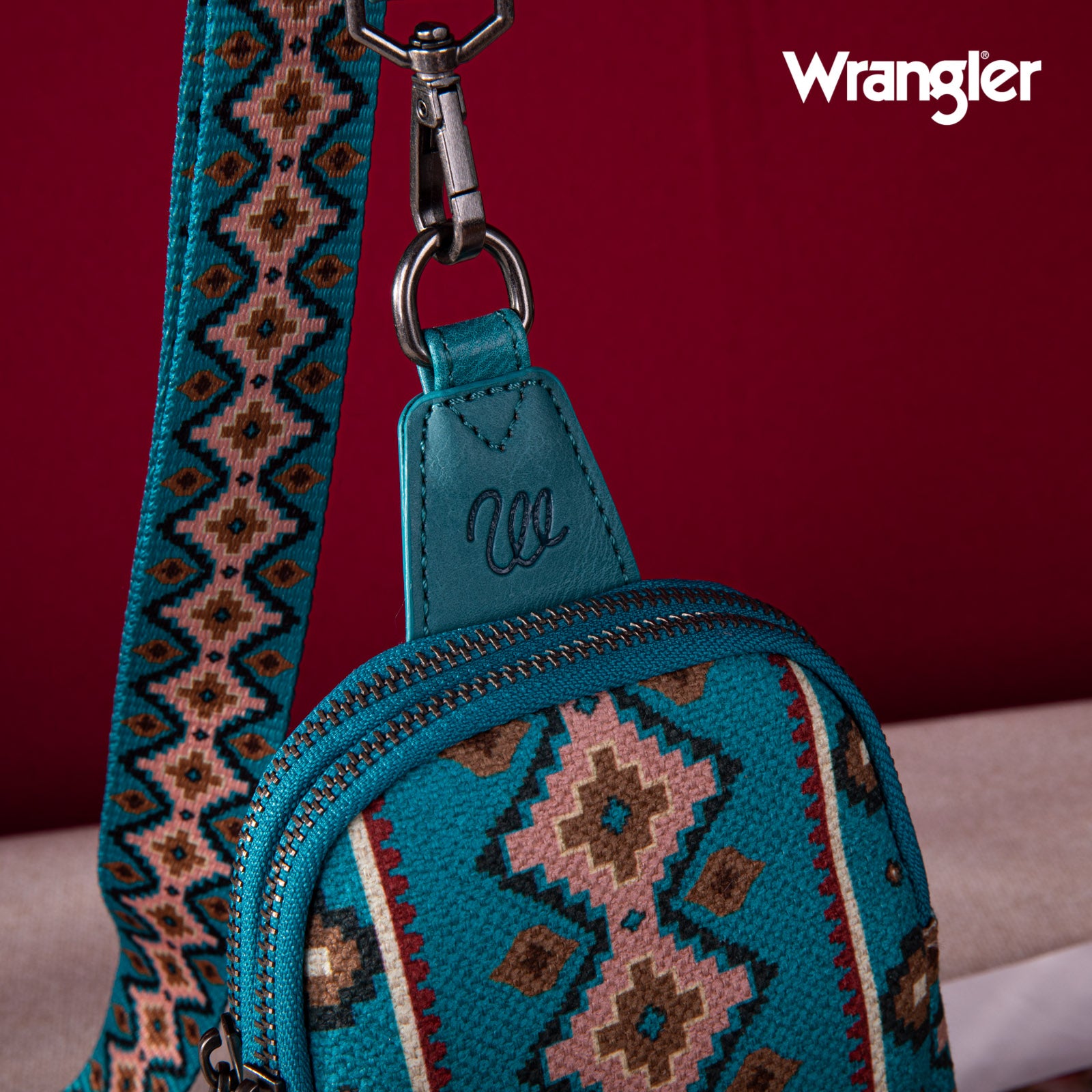 2024 New Wrangler Southwestern Print Canvas Crossbody/Sling/Chest Bag-Dark Turquoise