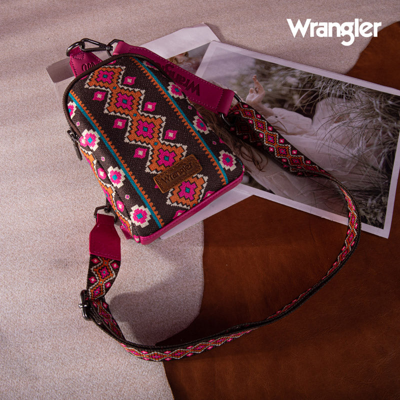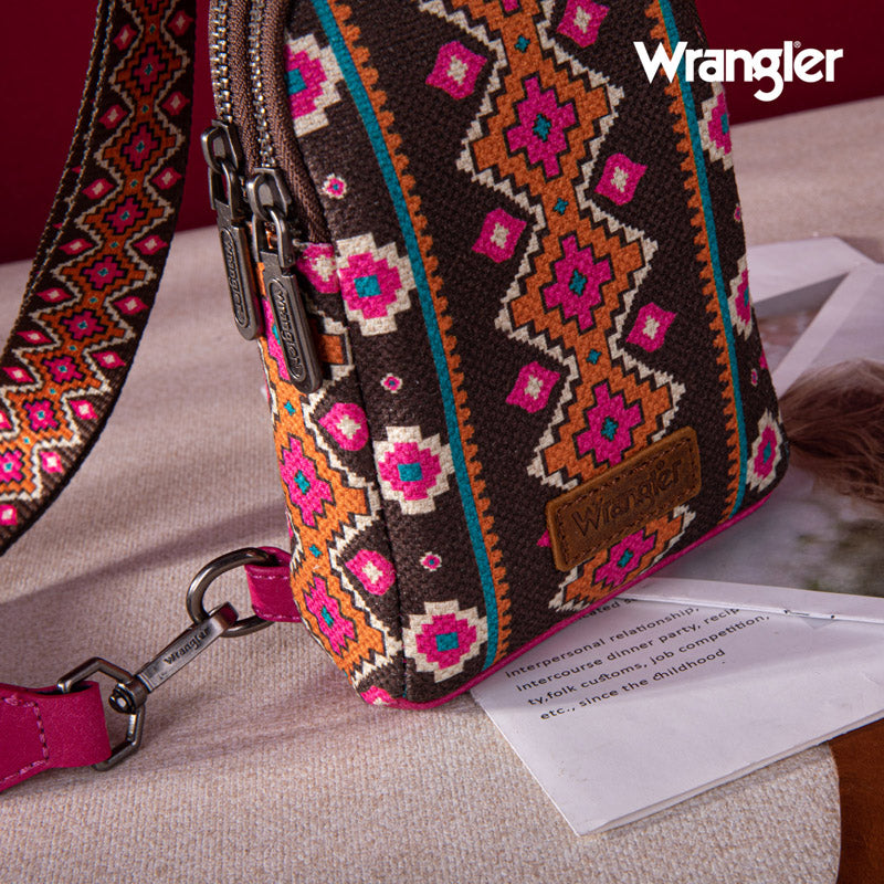 2024 New Wrangler Southwestern Print Canvas Crossbody/Sling/Chest Bag-Hot Pink