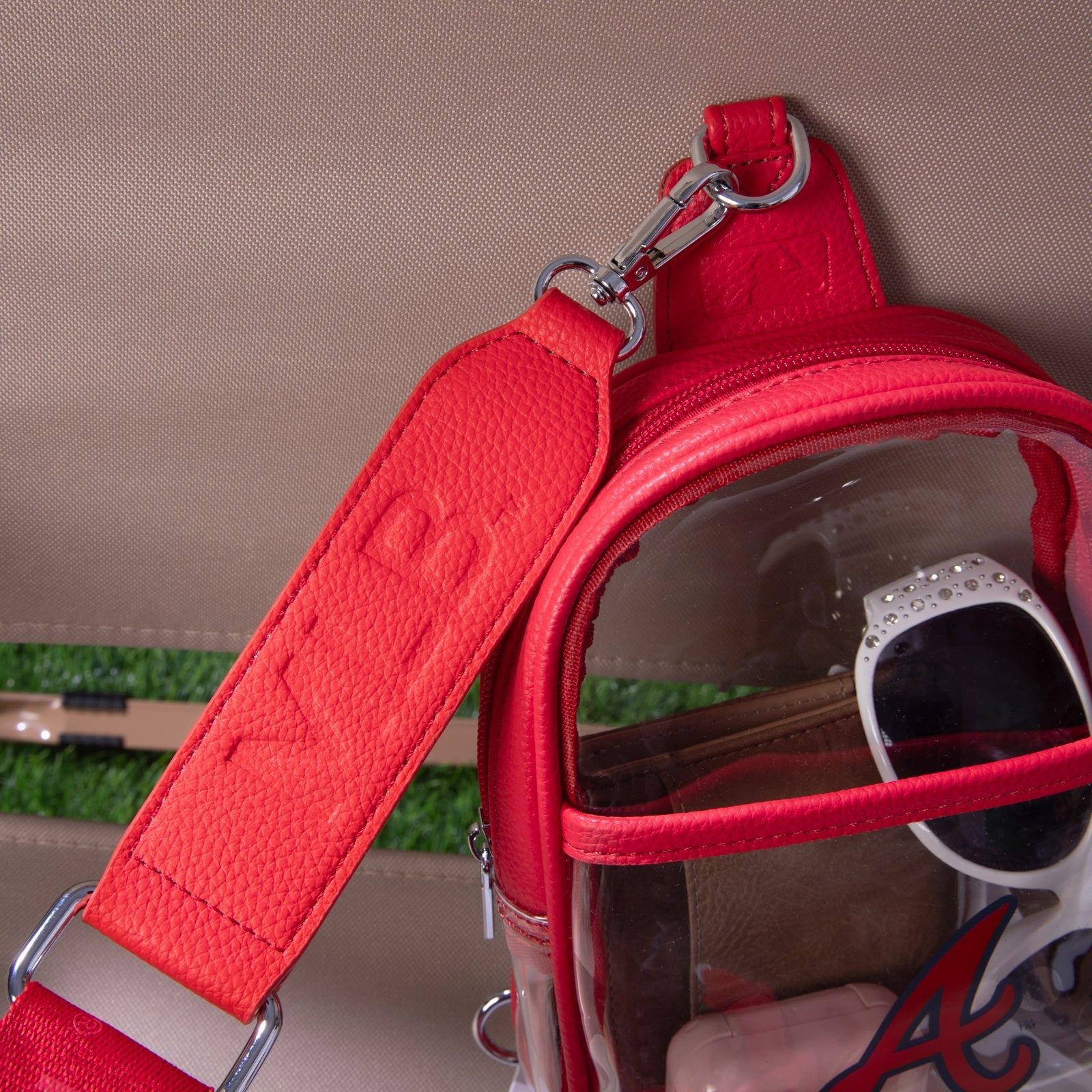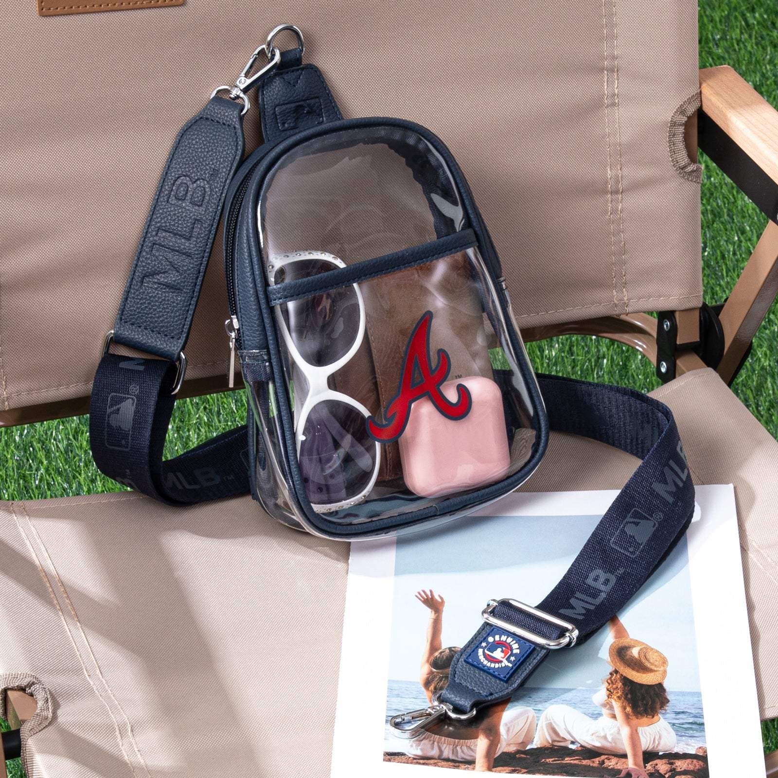 Officially Licensed Major League Baseball Merchandise.Go to games in style with these new Clear Stadium Sling Bags! The strap connects to either side of the bag with your favorite teams full color logo on it.