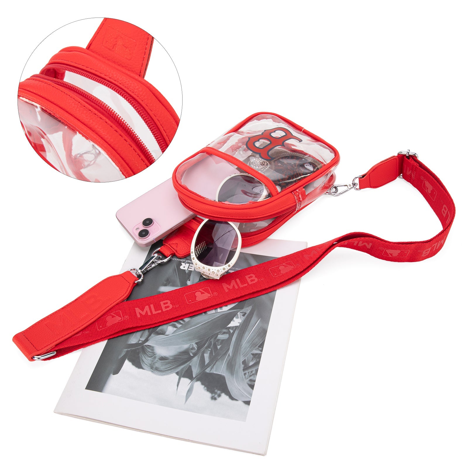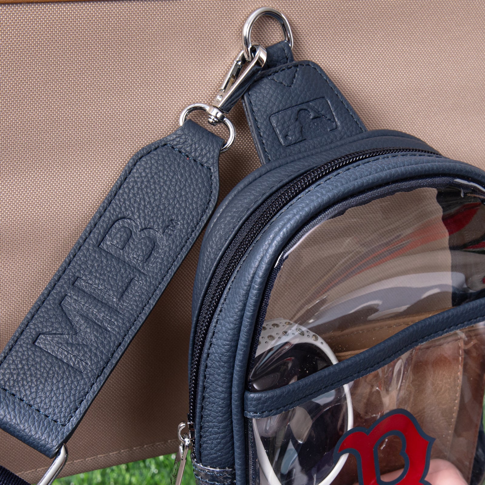 Officially Licensed Major League Baseball Merchandise.Go to games in style with these new Clear Stadium Sling Bags! The strap connects to either side of the bag with your favorite teams full color logo on it.