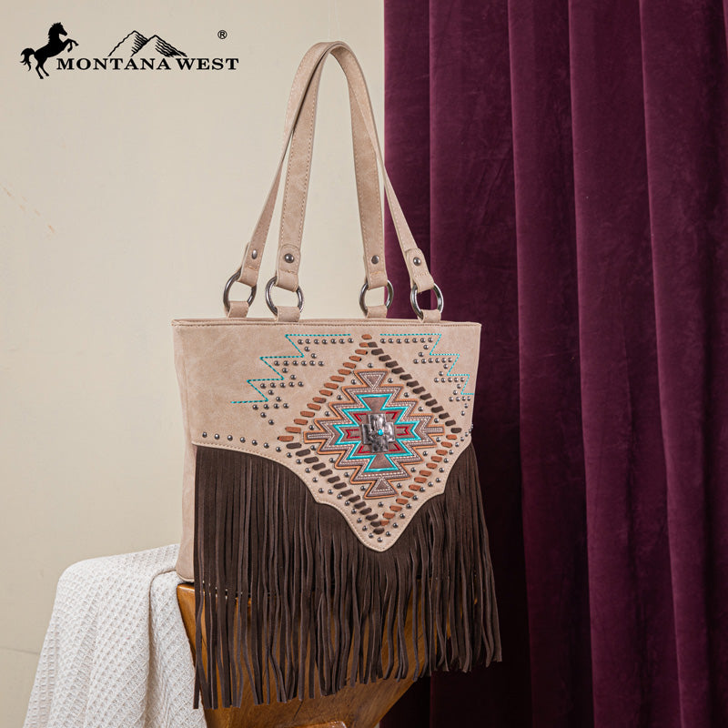 Montana West Aztec Fringe Concealed Carry Tote Bag