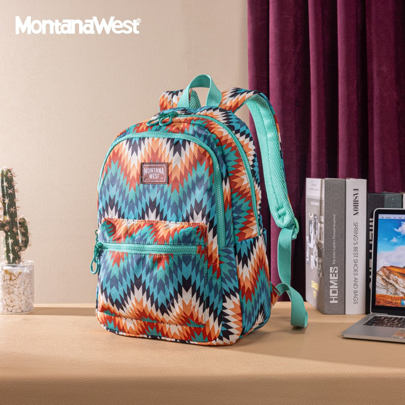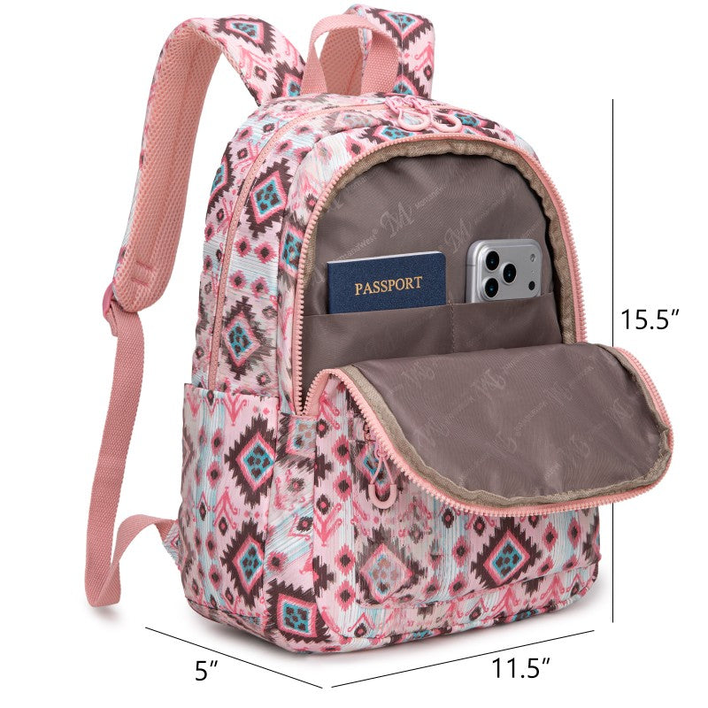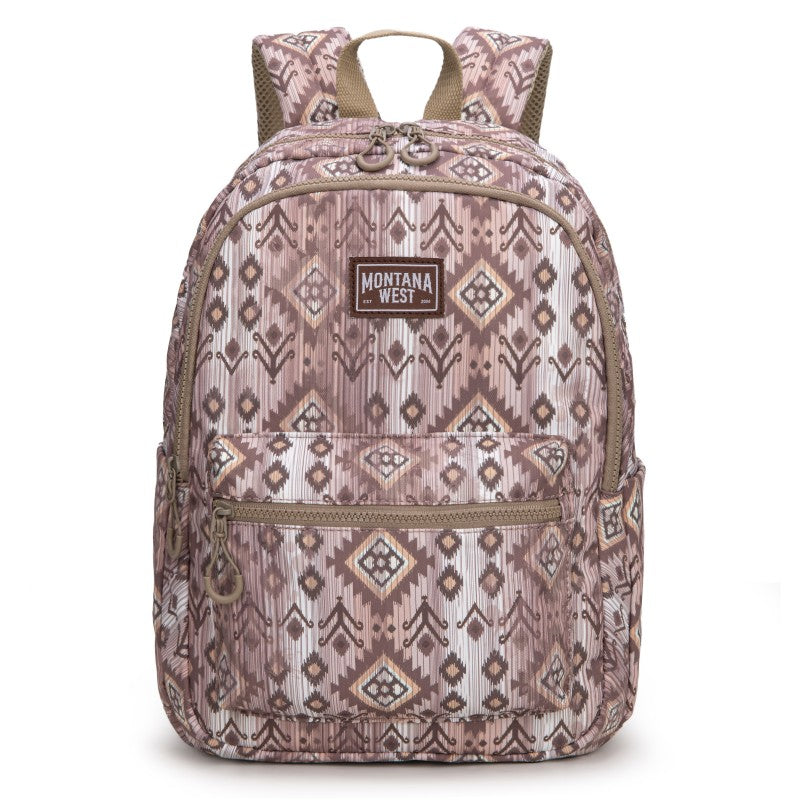 - Details: All-over Aztec print, ergonomic design, 9 pockets, zippered main compartment, padded shoulder straps, unisex style.