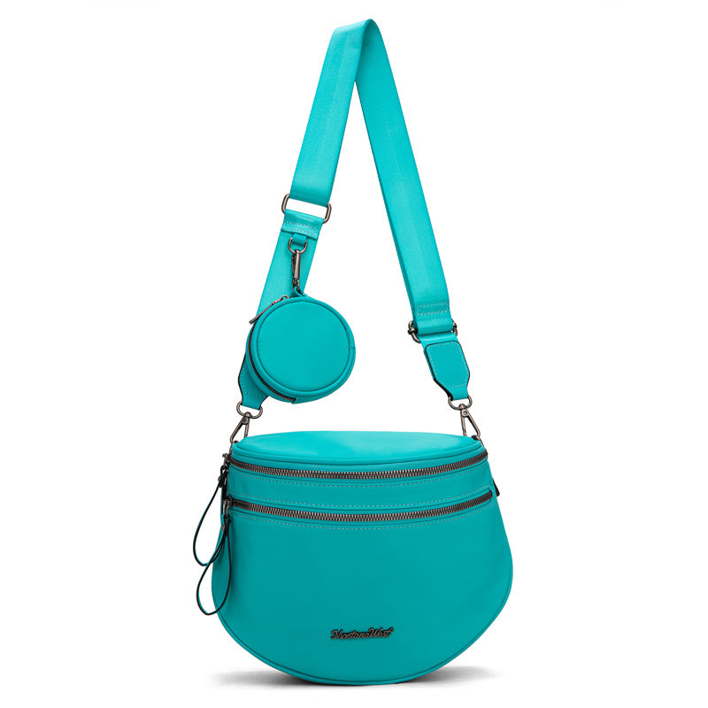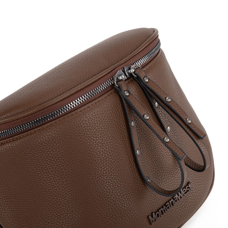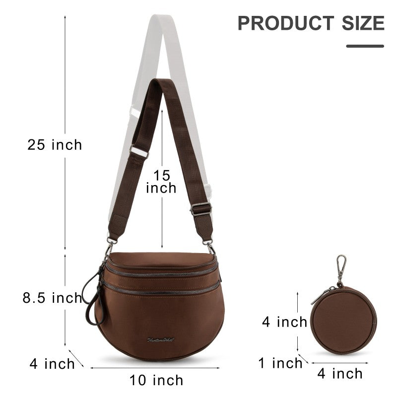 This Montana West crossbody bag is crafted from Nylon Fabric/Vegan leather with dual zip compartments and a matching coin purse. This fanny pack is perfect for hands-free style and carrying on-the-go essentials. Available in multiple colors, including bold black-and-white leopard print and checkerboard, Sunflower florals, and more to match any outfit