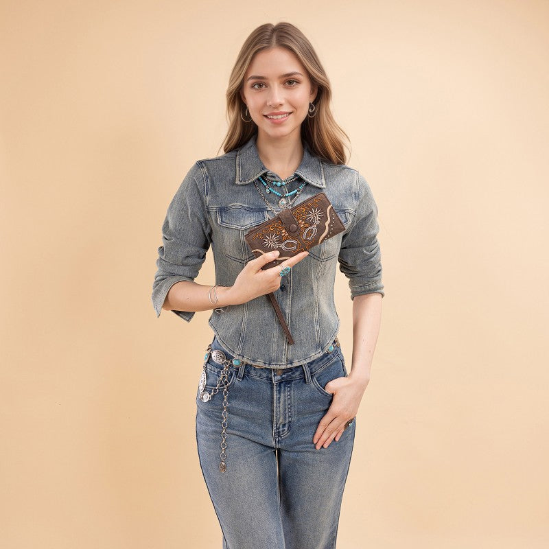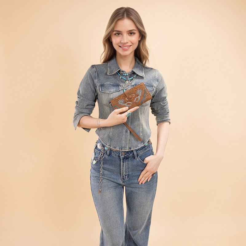 Ideal for casual outings or festivals, it fits essentials like ID, cards, and small change. With its rustic chic design, this Montana West wallet combines authentic Western charm with everyday functionality.