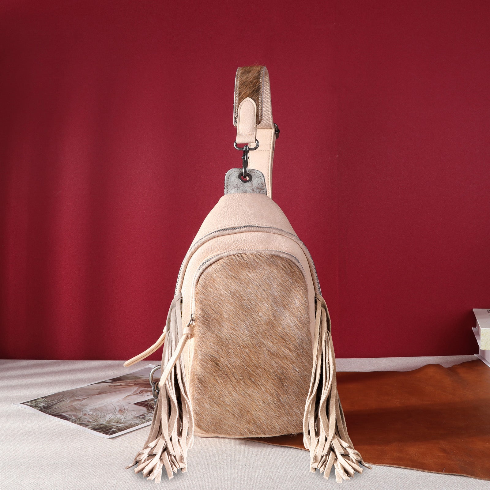 Please note: This Crossbody Bag is crafted from 100% Genuine Hair-on Cowhide, meaning the cowhide texture on each bag is unique.