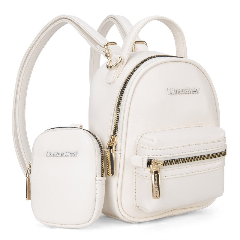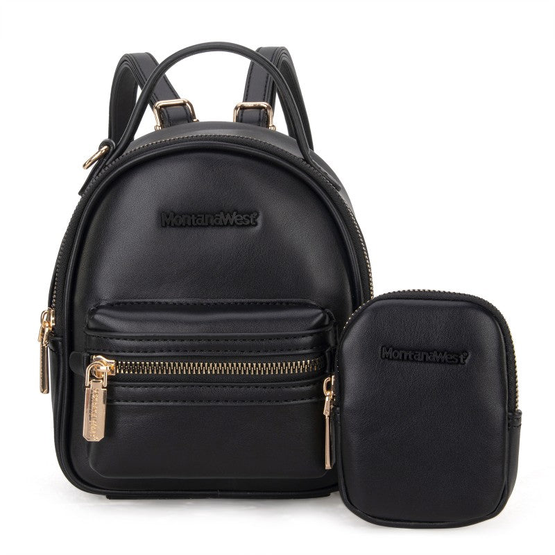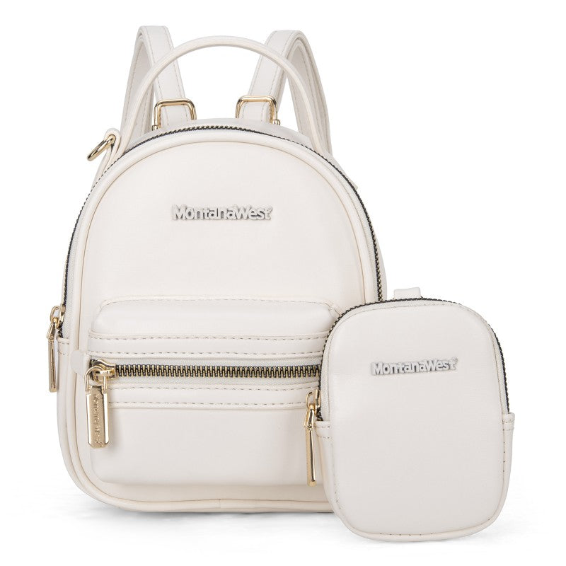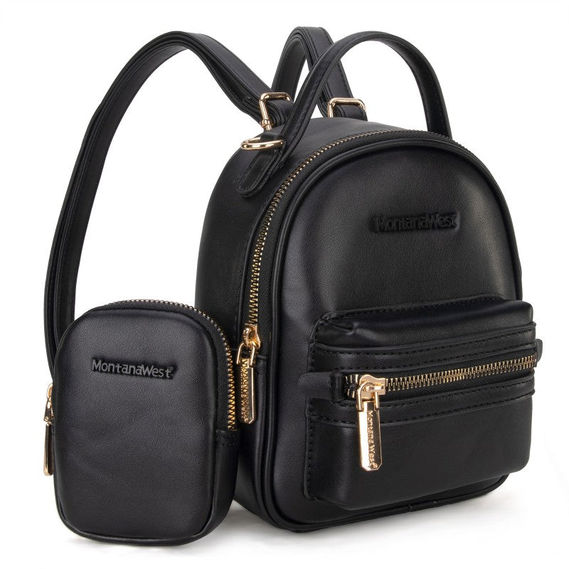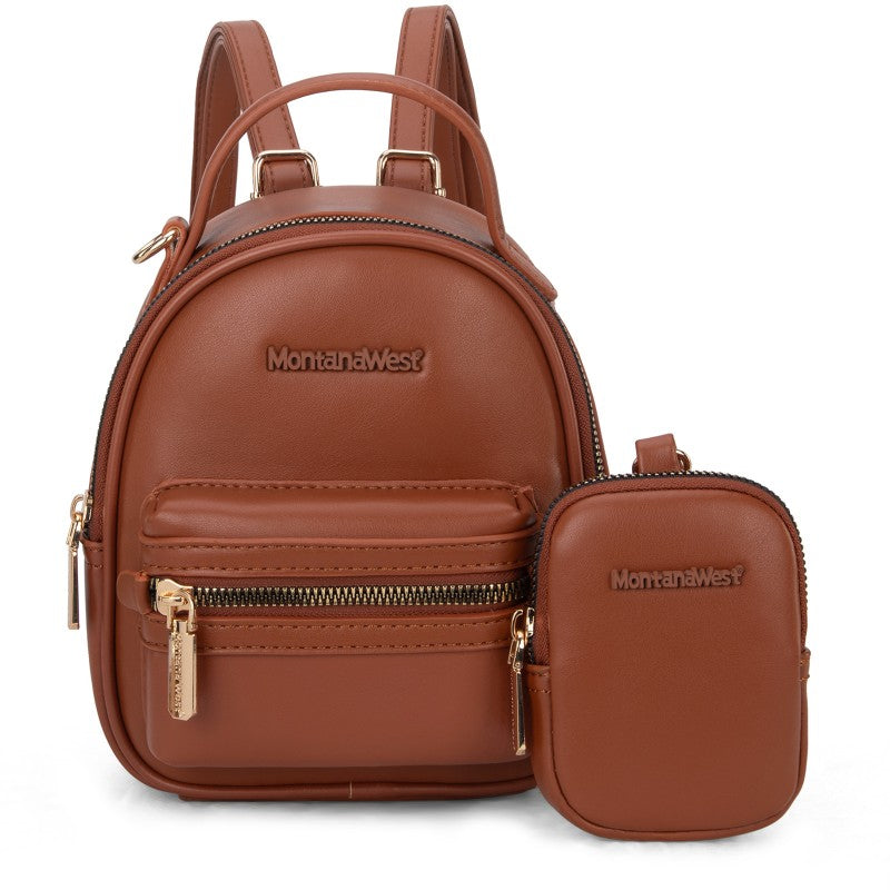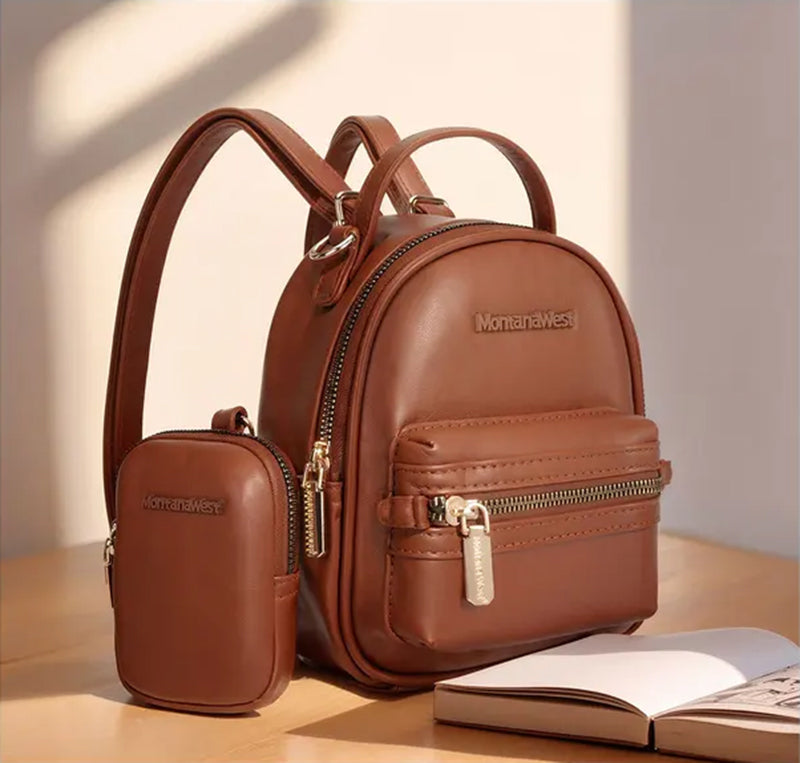 The Montana West Mini Backpack is a compact, stylish carryall crafted from premium vegan leather. Designed with clean lines and reinforced stitching, it offers durability without compromising on fashion. This mini backpack also includes a detachable mini coin purse.