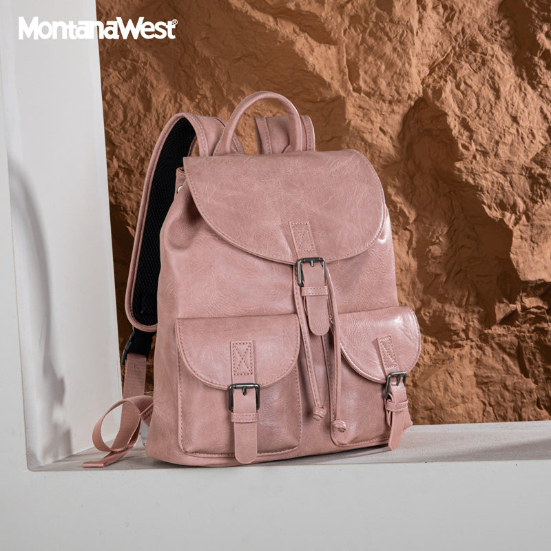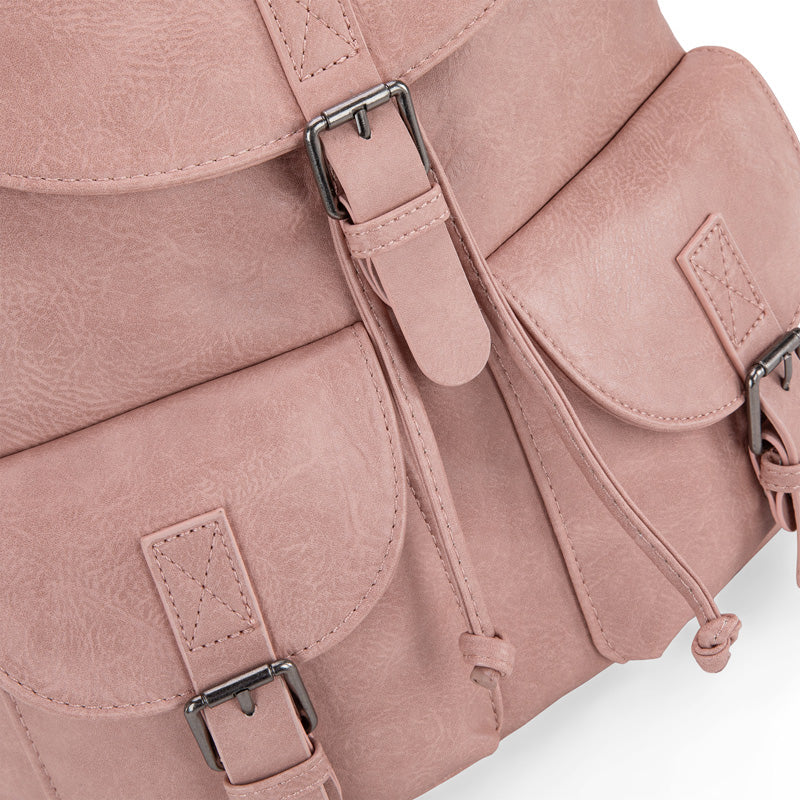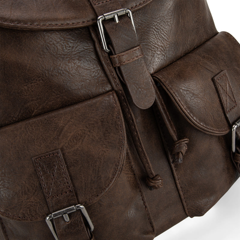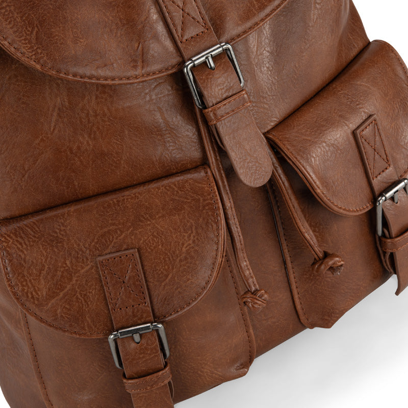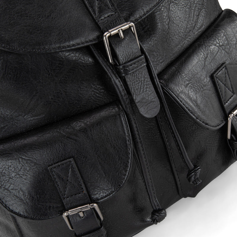 Made of PU leather, this backpack has: