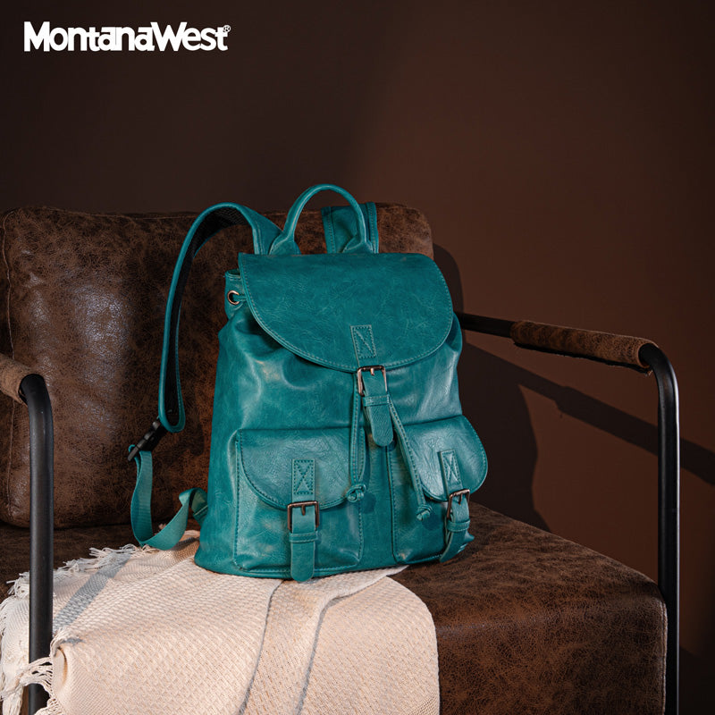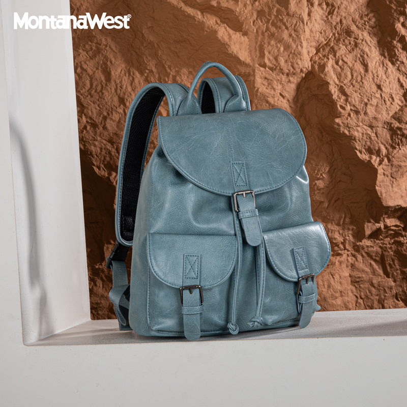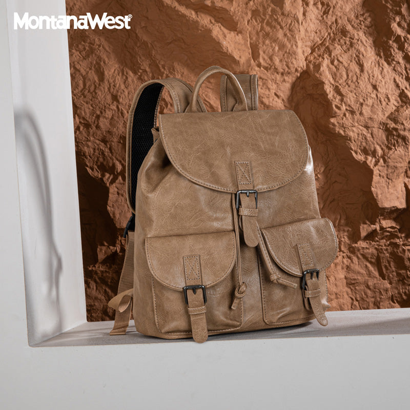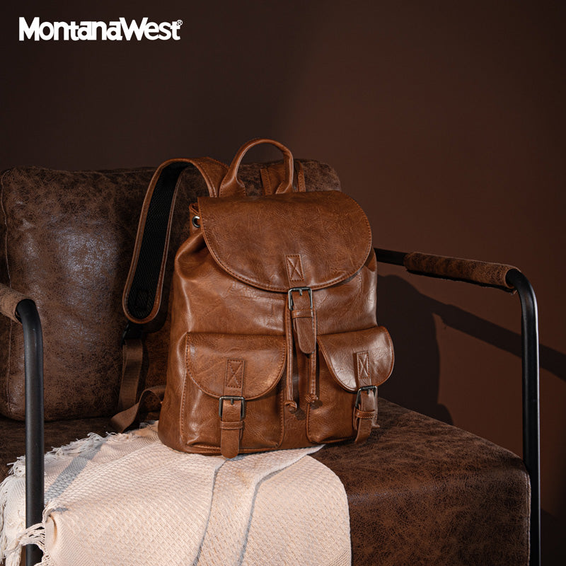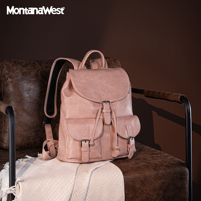 Made of PU leather, this backpack has: