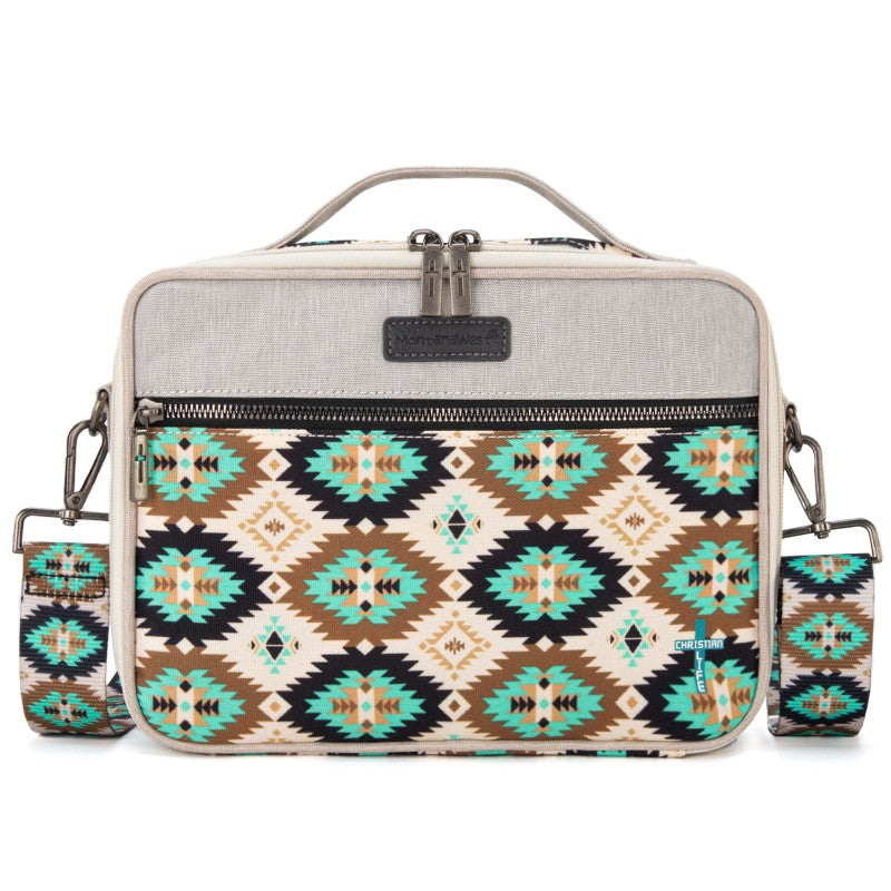 Carry your Bible in true Western style with this Montana West Bible Cover, featuring rustic cowboy print, steer head, cowprint, and Aztec patterns in earthy tones. The Western bag has a double zipper, a front pocket, pen holders, and extra space for notes and accessories. Includes a built-in bookmark strap to mark your page and keep your Bible secure, Designed for easy carrying to church, study groups, or travel, this Western Bible case fits most standard Bibles, devotionals, and journals.