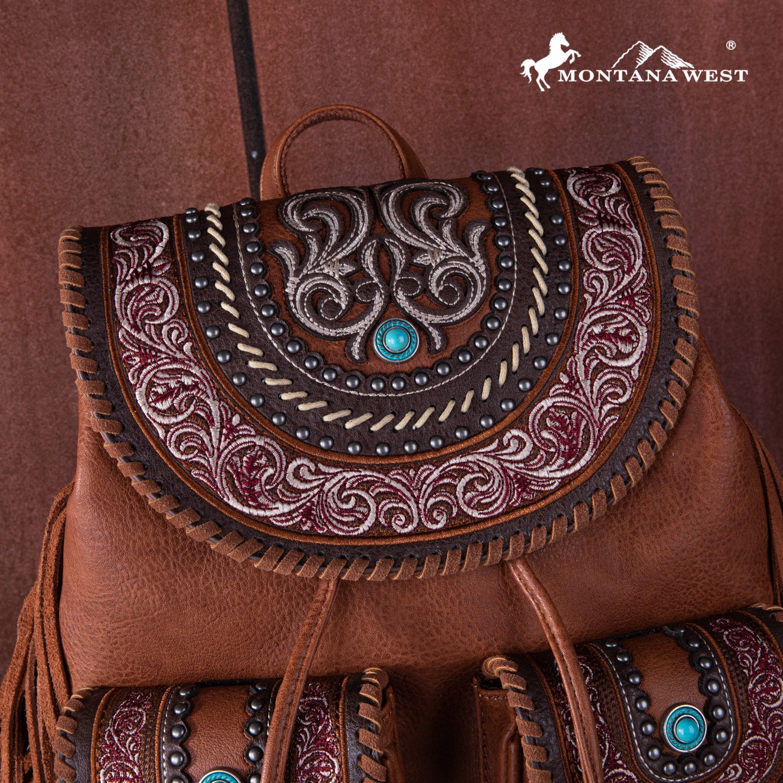Montana west floral embroidered made of PU leather, this backpack has:-