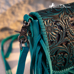 Montana West Genuine Leather Tooled Fringe Crossbody