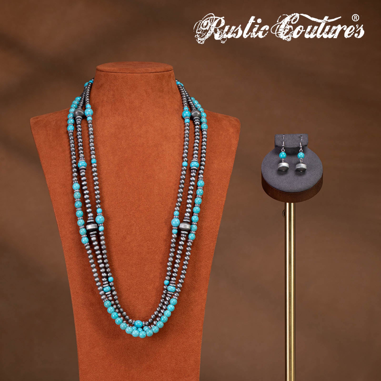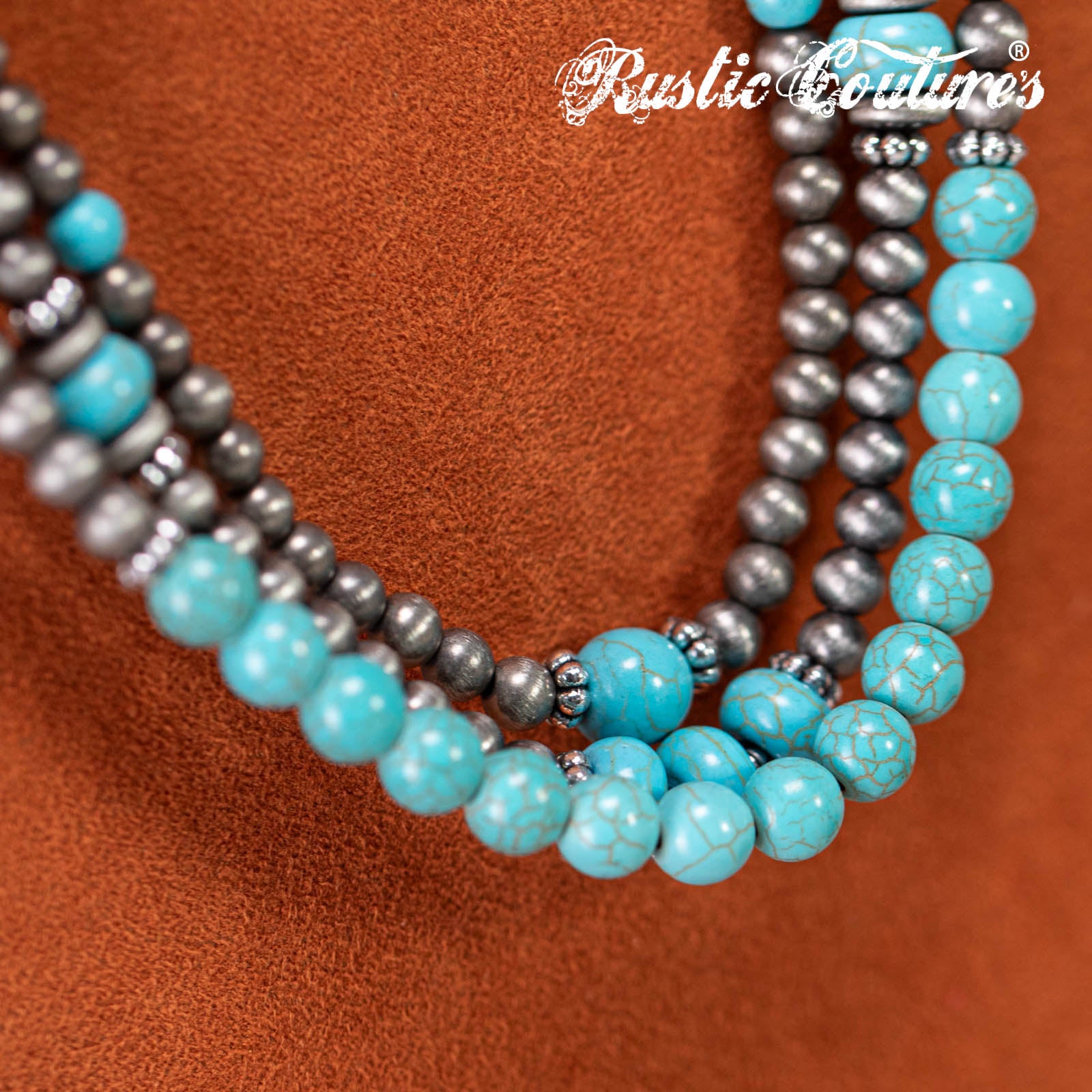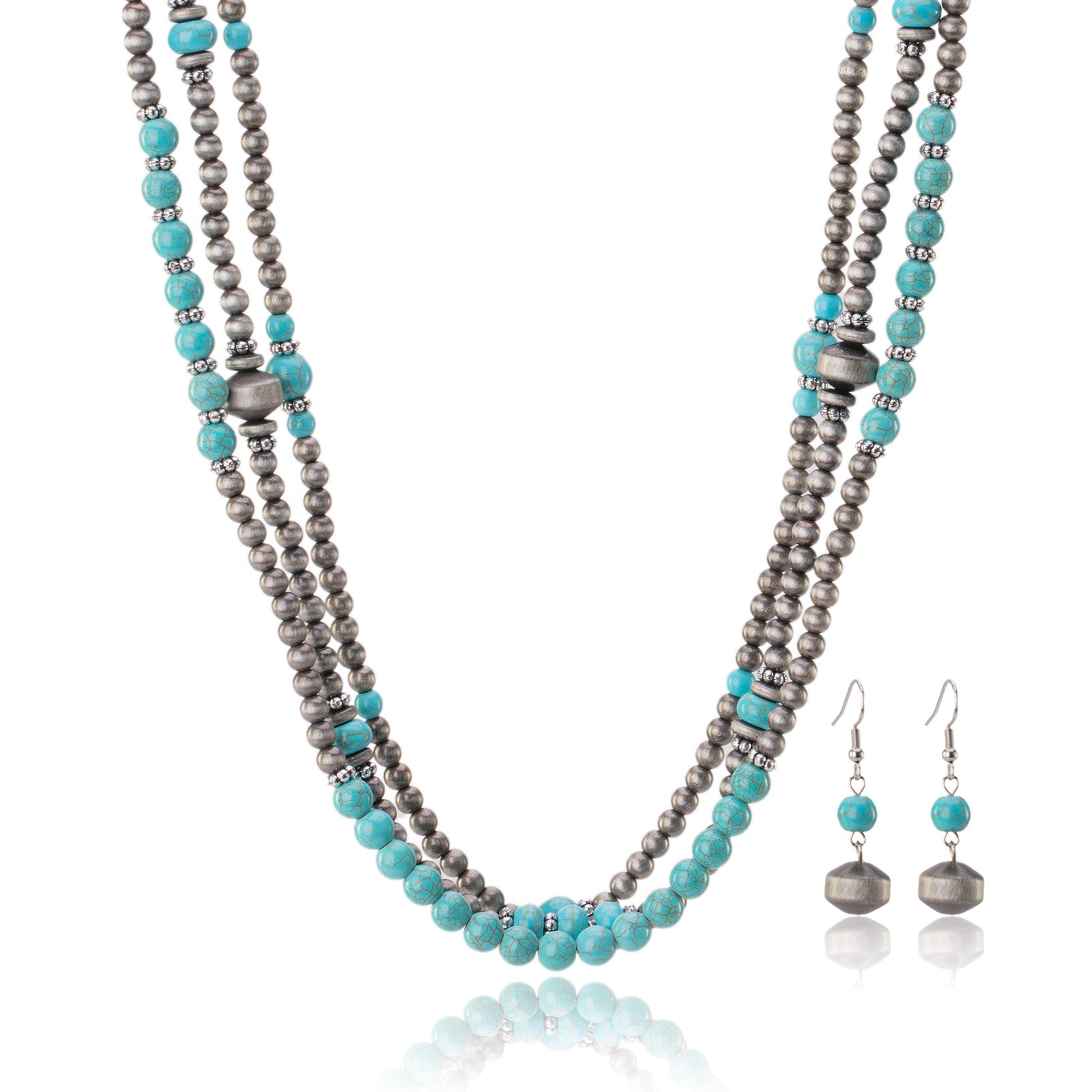 Design: Multi-strand silver-tone beads with turquoise stones