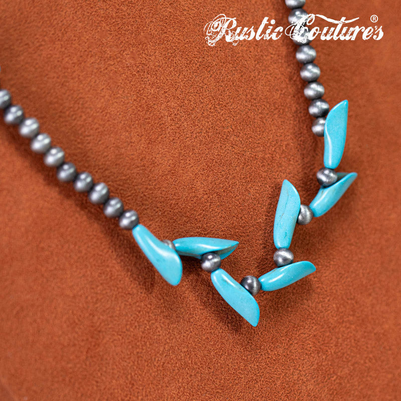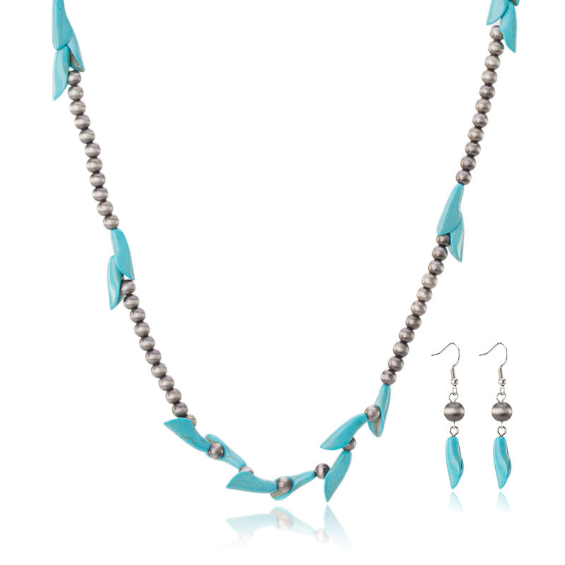Design: Multi-strand silver-tone beads with Turquoise Stone