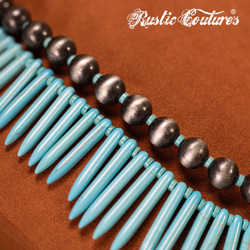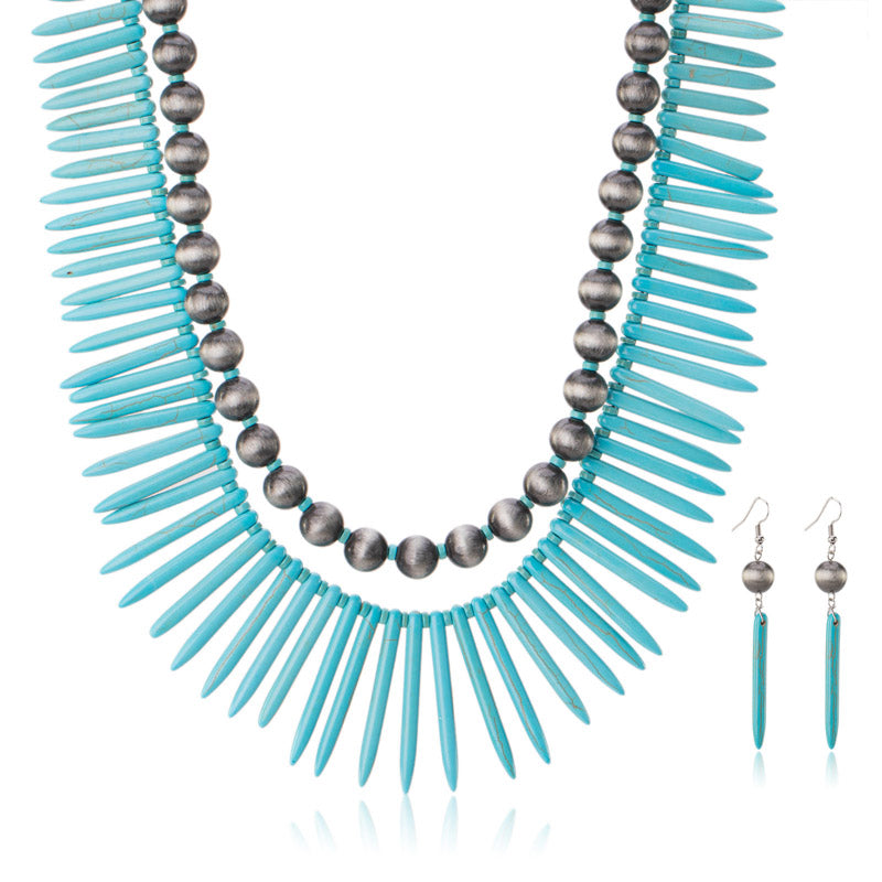Design: Multi-strand silver-tone beads with Turquoise Stone