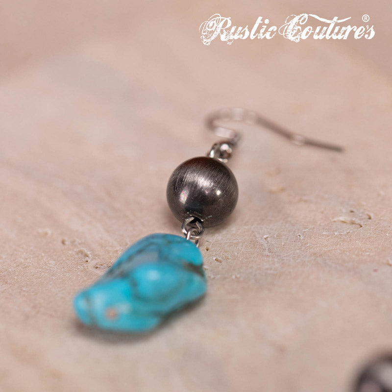 Material: Silver-tone metal and turquoise stones