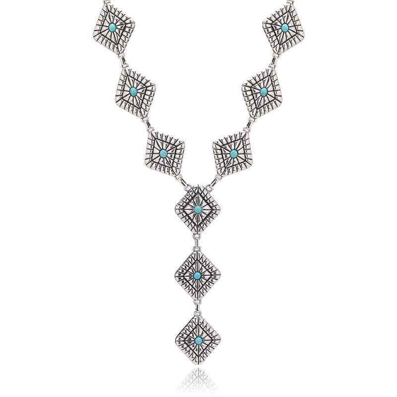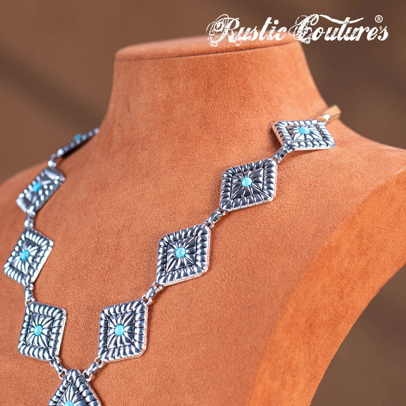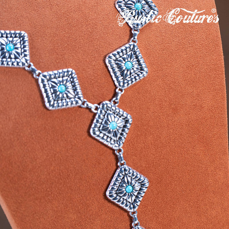 Material: Silver-tone metal and turquoise stones