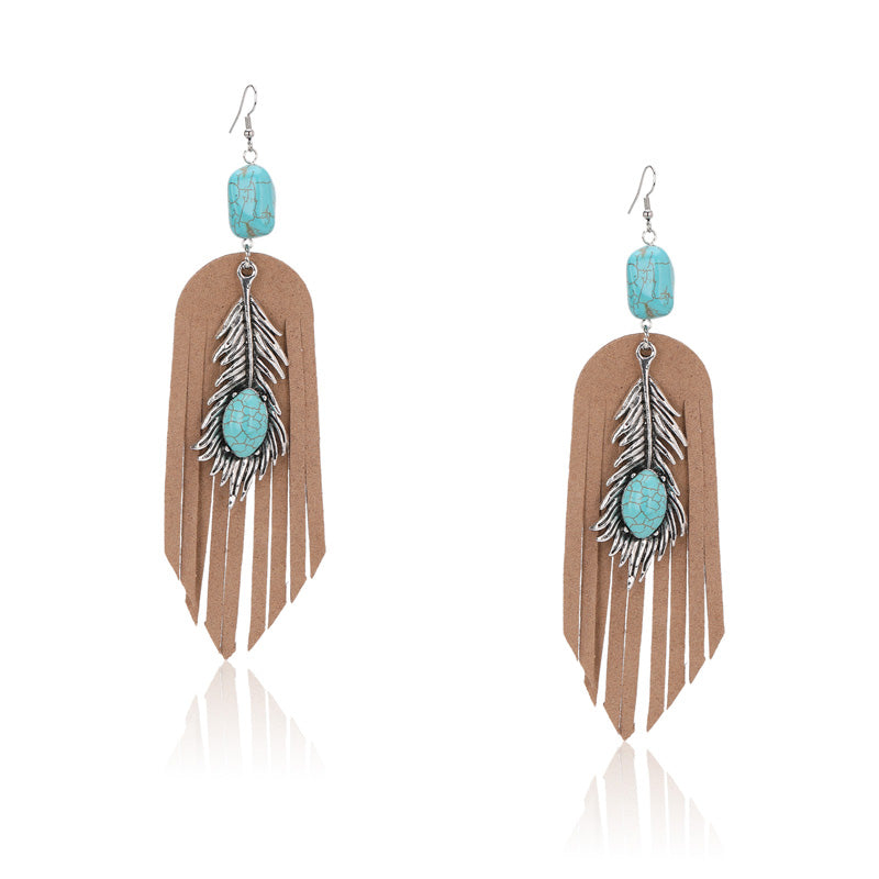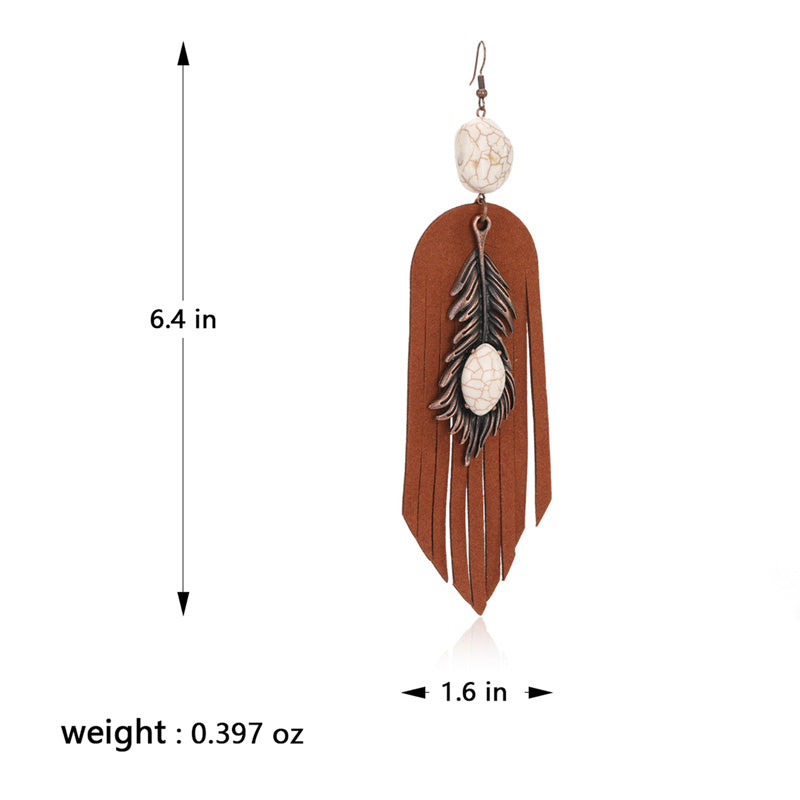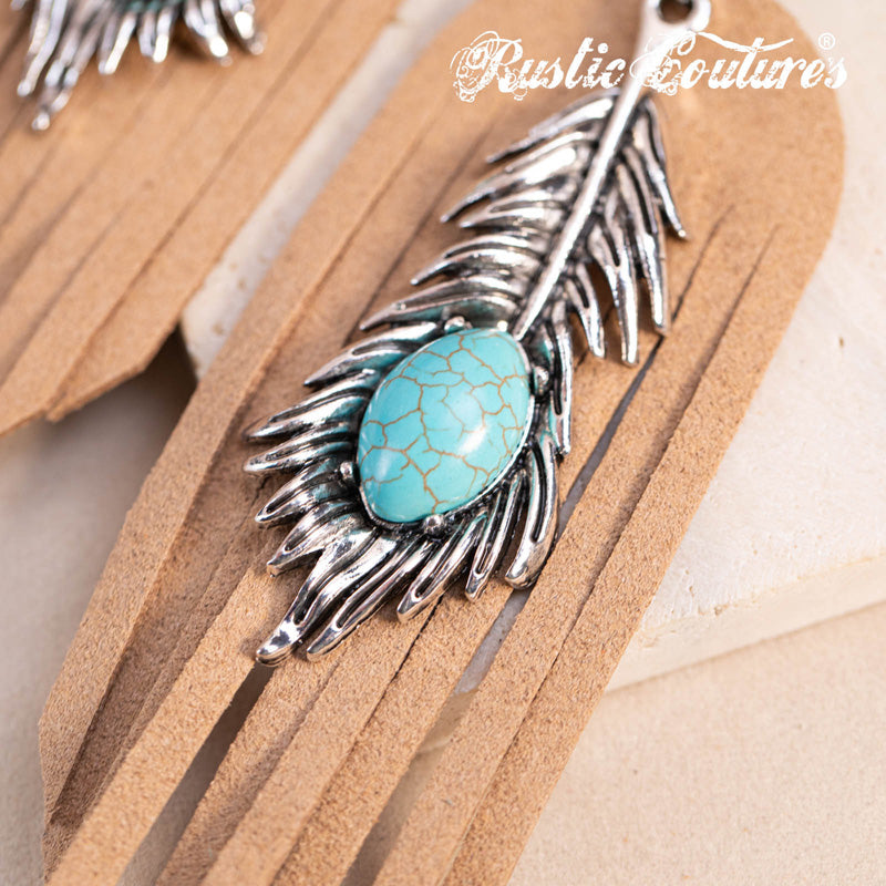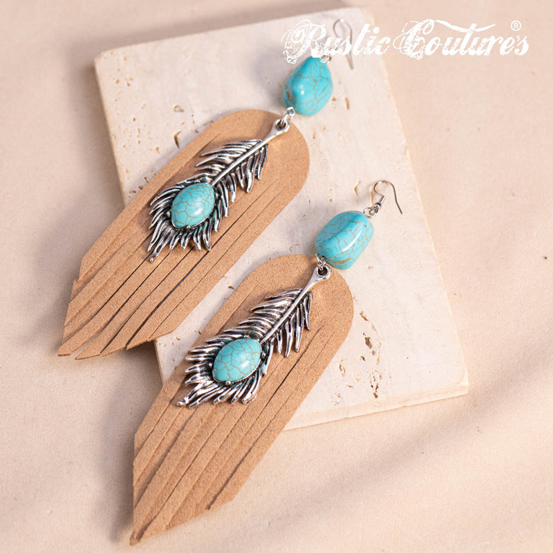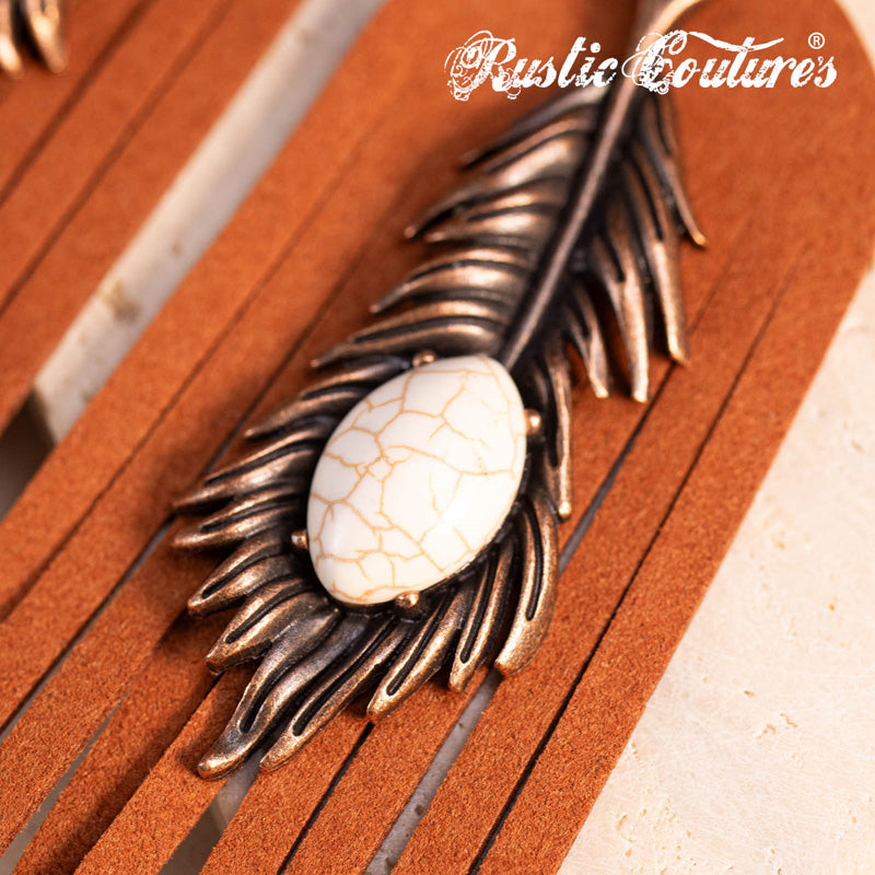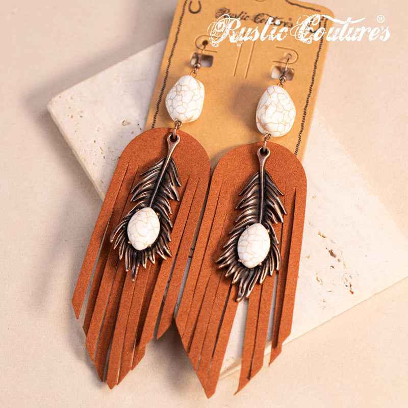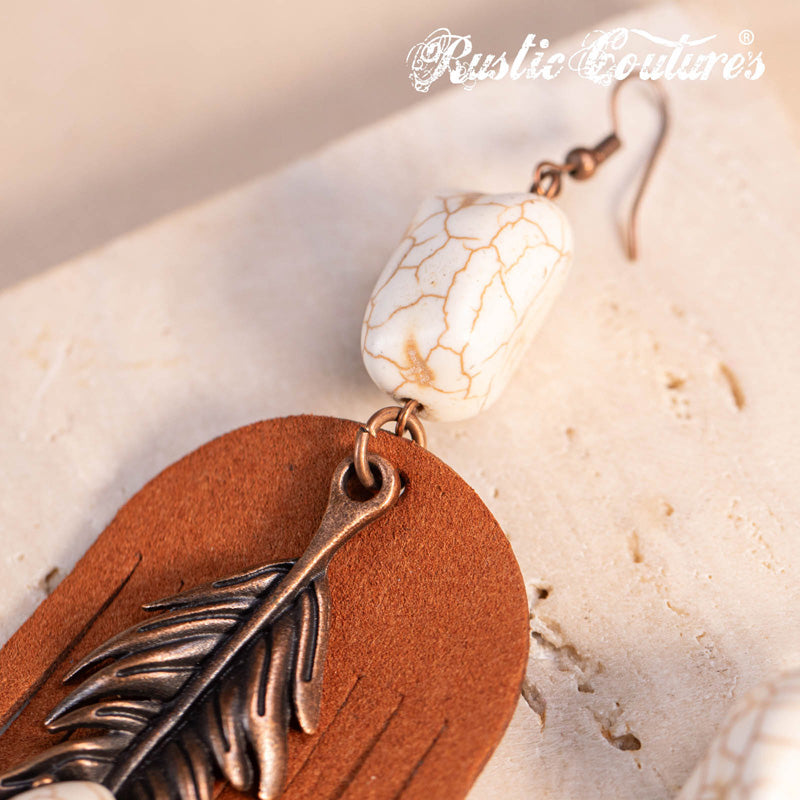 Rustic Couture's® Leather Feather Natural Stone Dangling Earring