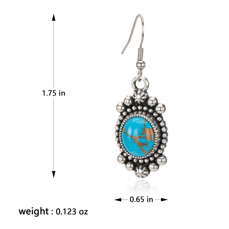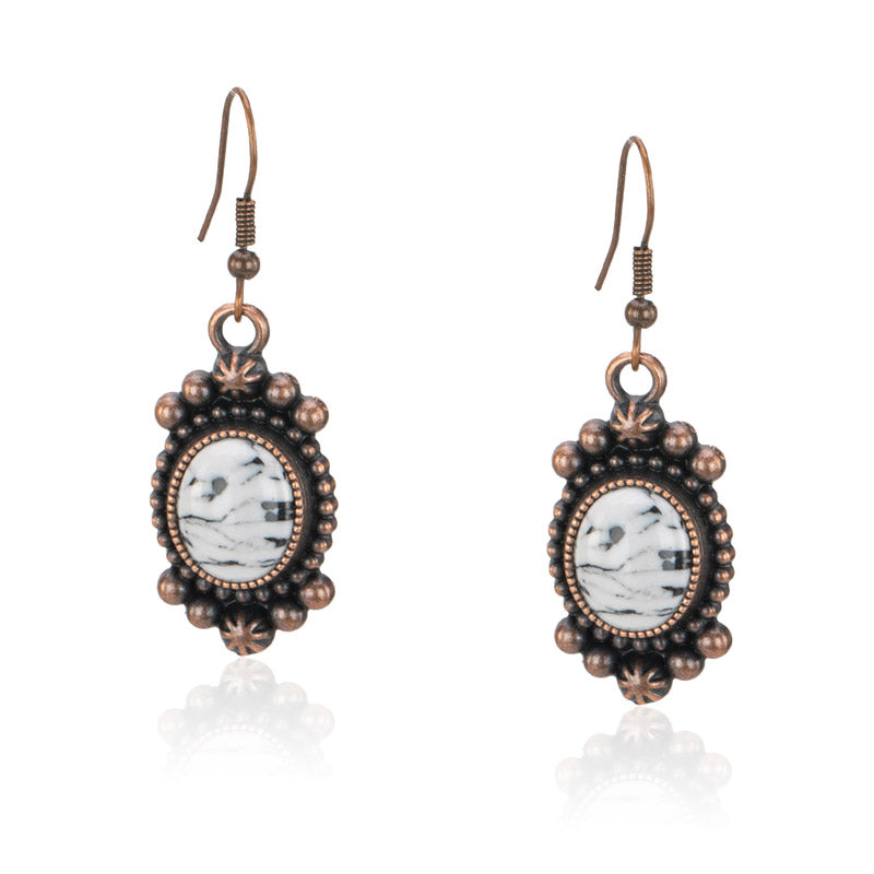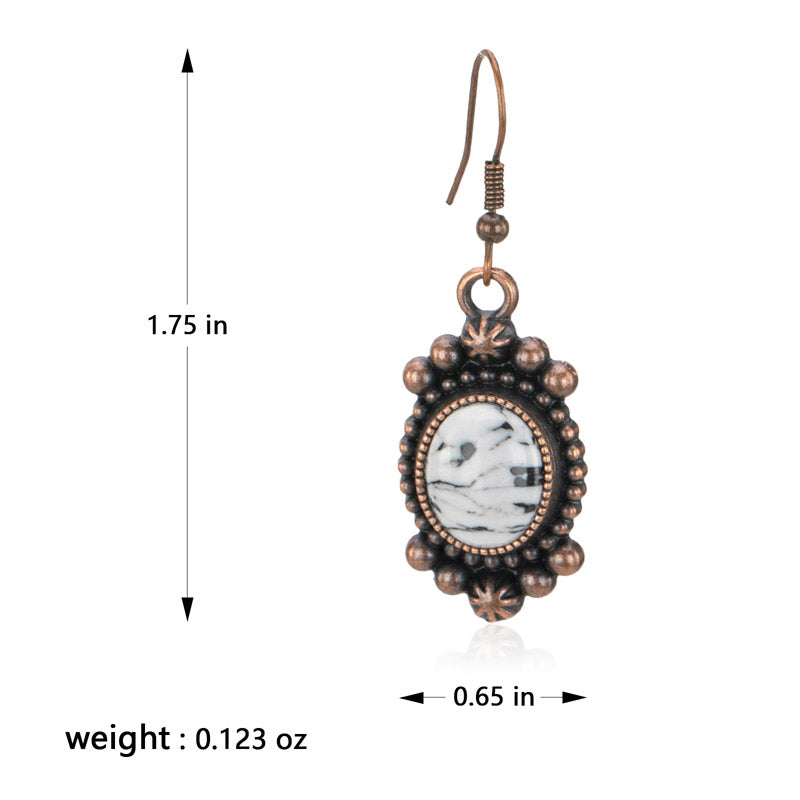Oval Nature Stone with Silver/Brozen Base Dangling Earring
