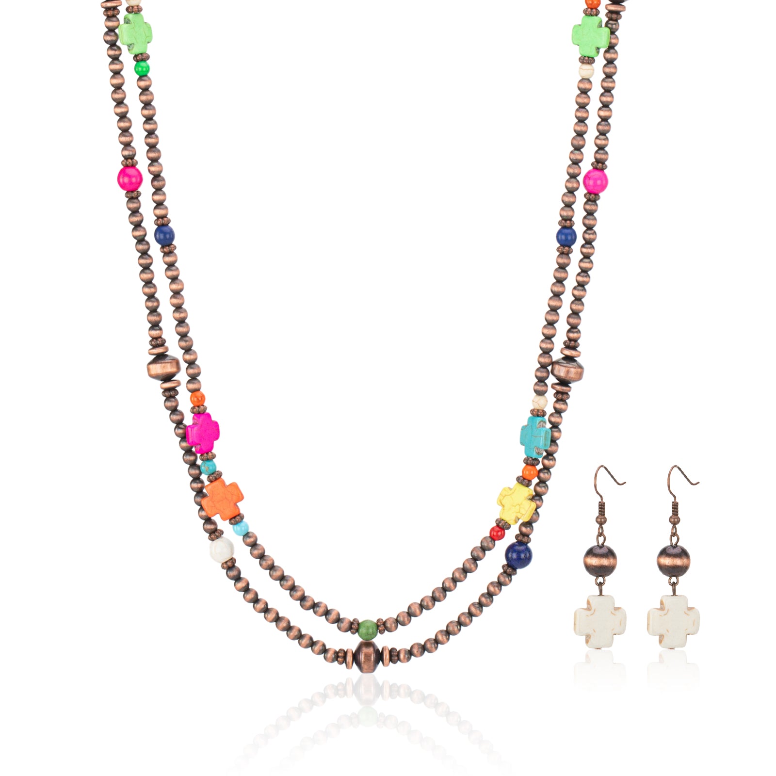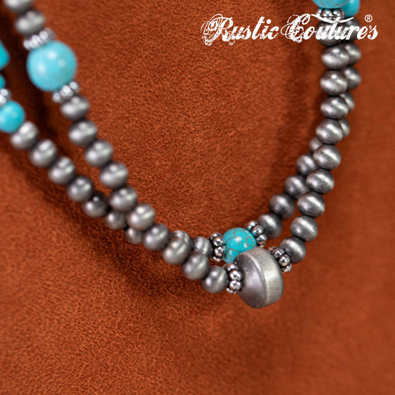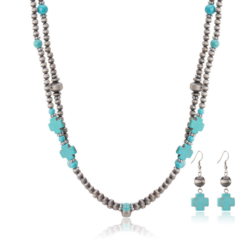 Turquoise Beaded Necklace Earrings Set