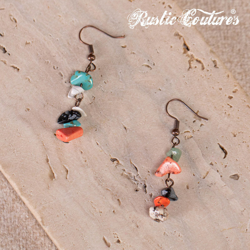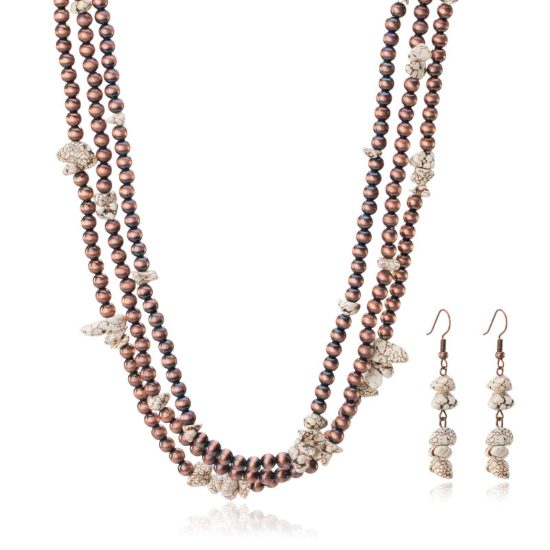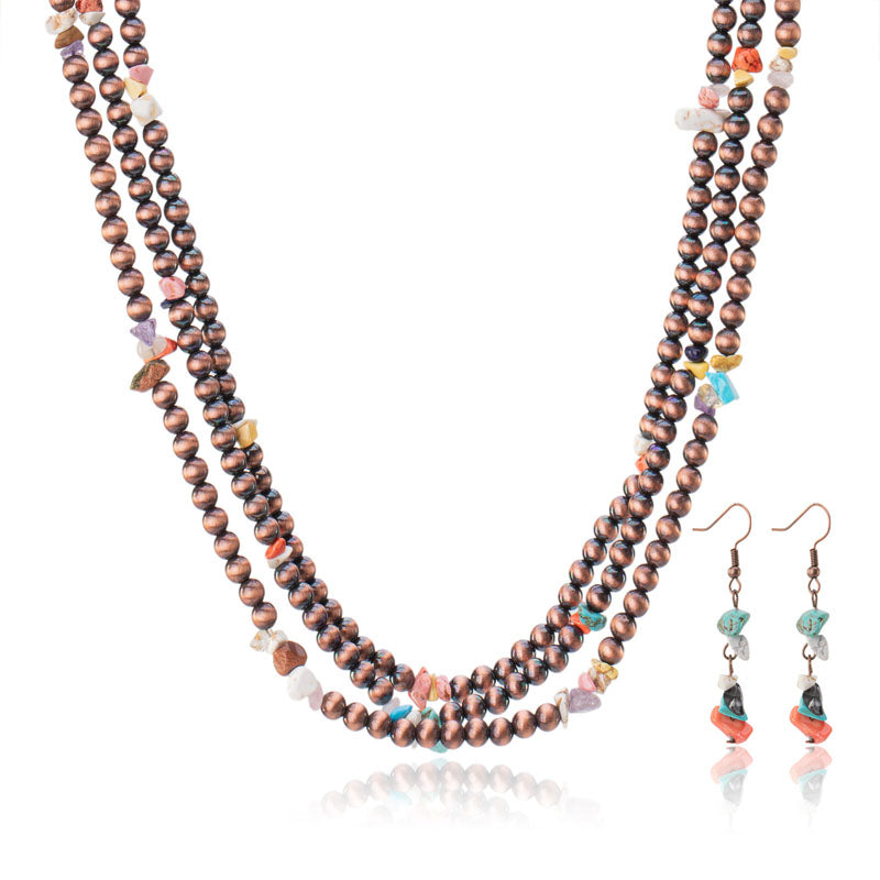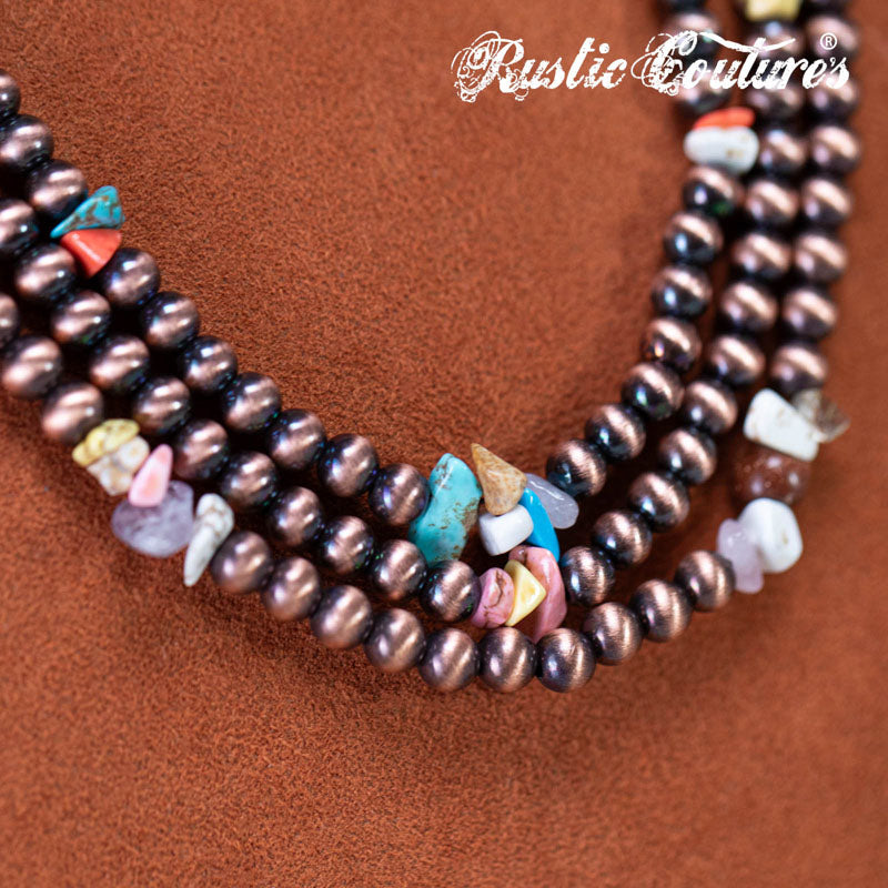 Design: Multi-strand copper-tone beads with turquoise and assorted stones