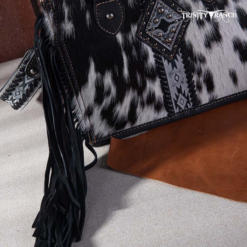 Cowhide upper is natural and will wear under normal conditions. Each bag will vary slightly as each pelt will have a unique pattern.