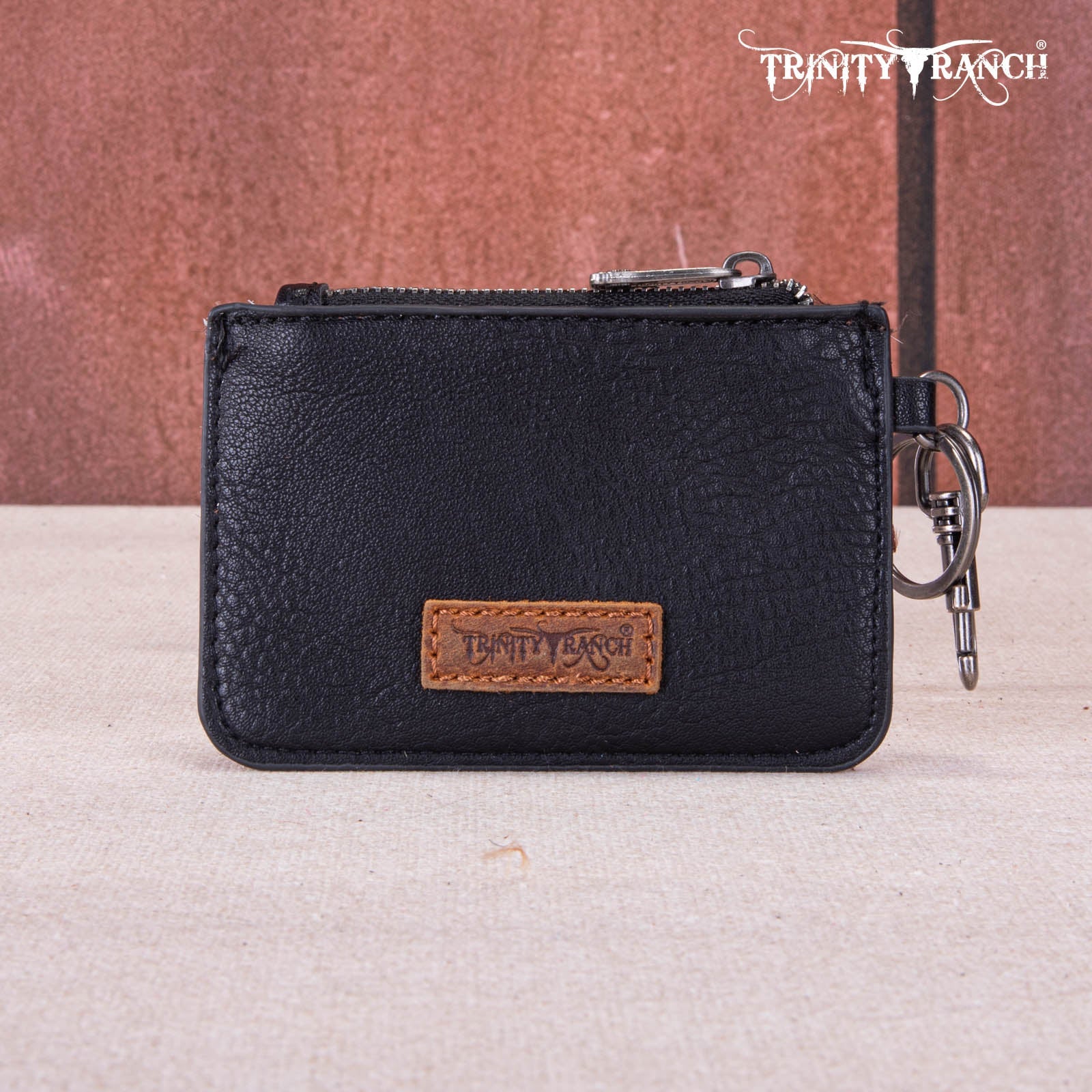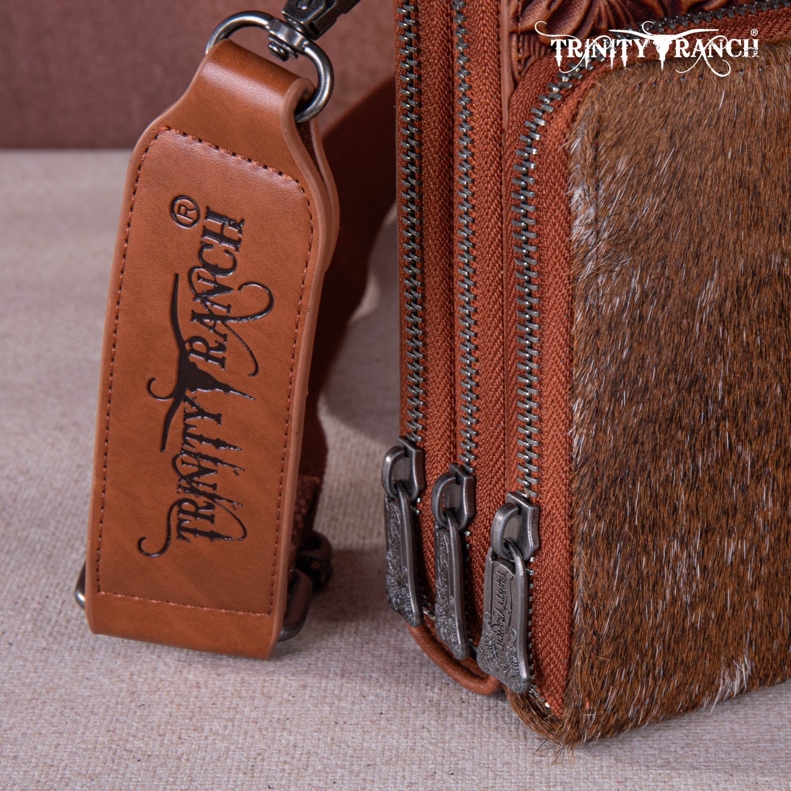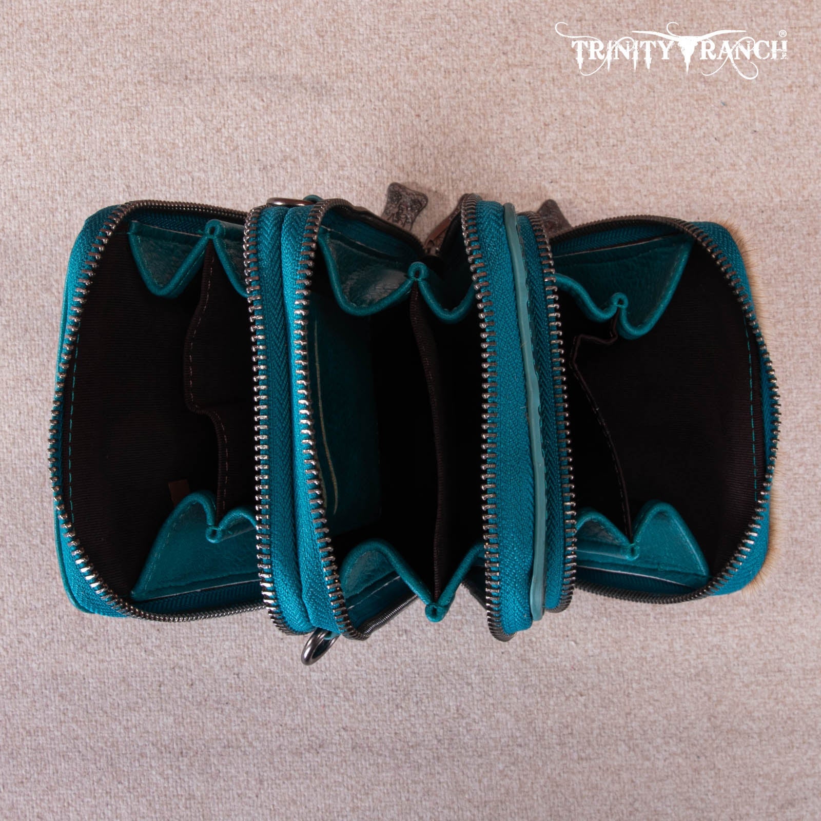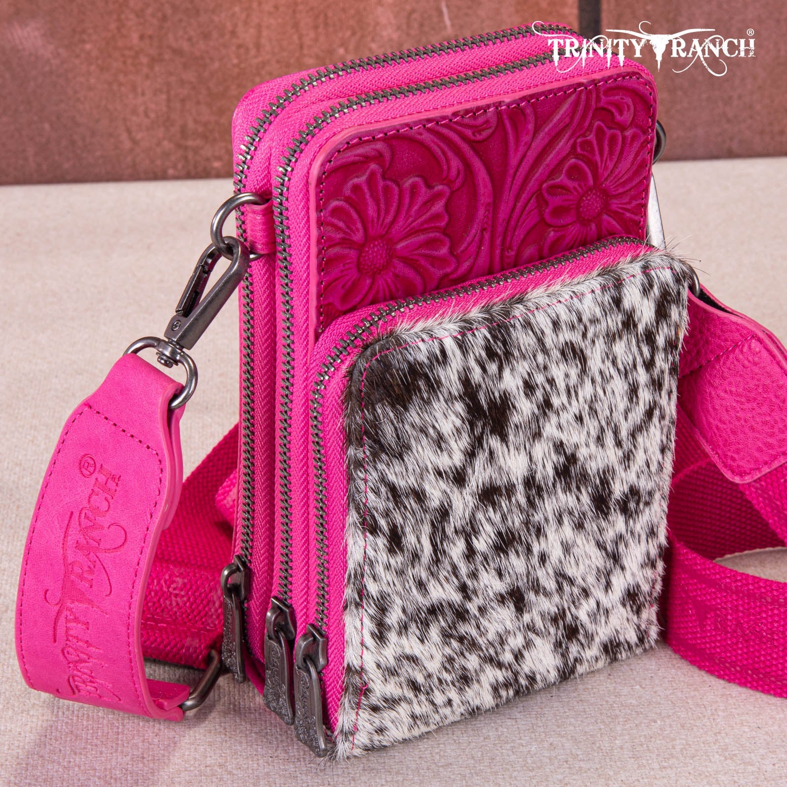 Trinity Ranch line by Montana West, this partial genuine leather phone wallet crossbody has: