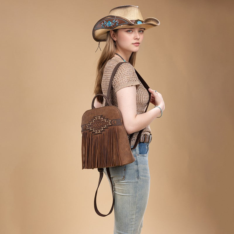 Trinity Ranch Aztec Tooled Fringe Concealed Carry Backpack