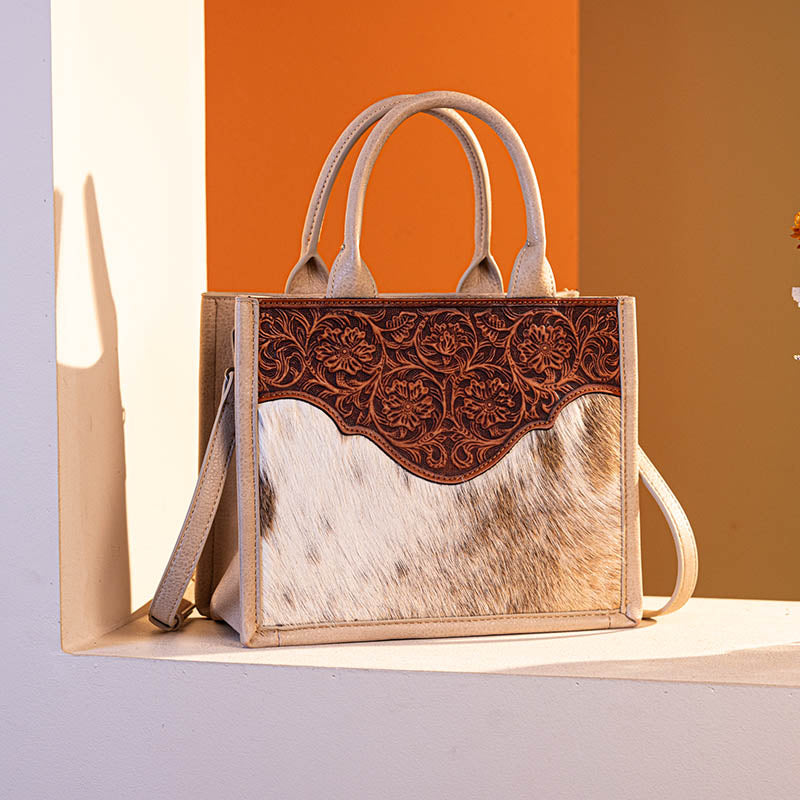 Noted: Due to the natural characteristics of cowhide, each tote bag cow print may vary slightly. The uniqueness of your bag adds to its charm!
