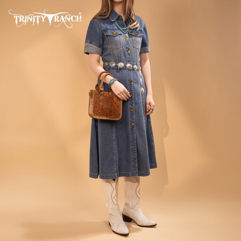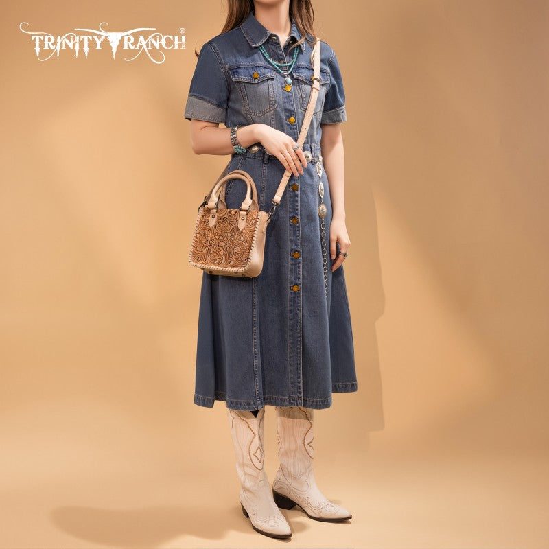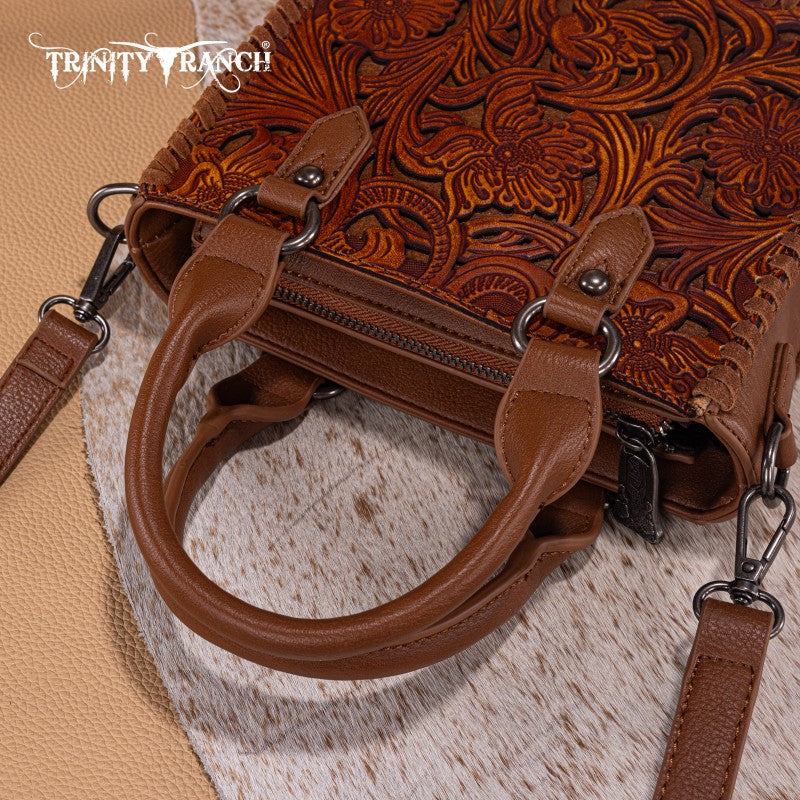 Trinity Ranch Western Floral Tooled Mini Tote Bag