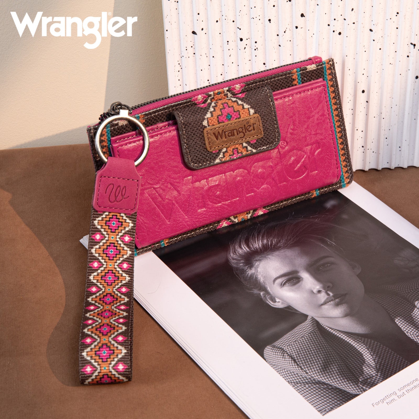 WG139-W013 Wrangler Aztec Print Bi-Fold Wallet Wristlet