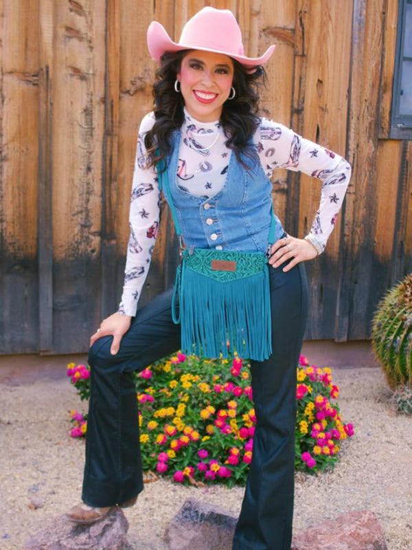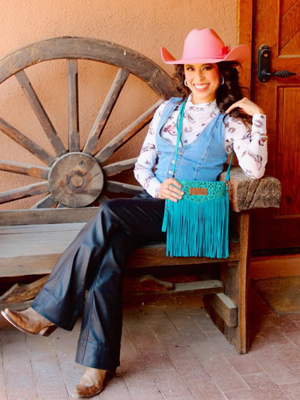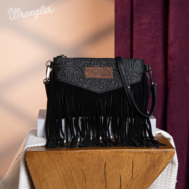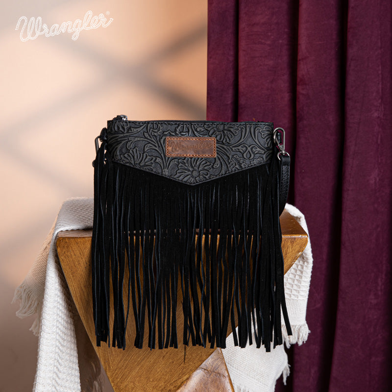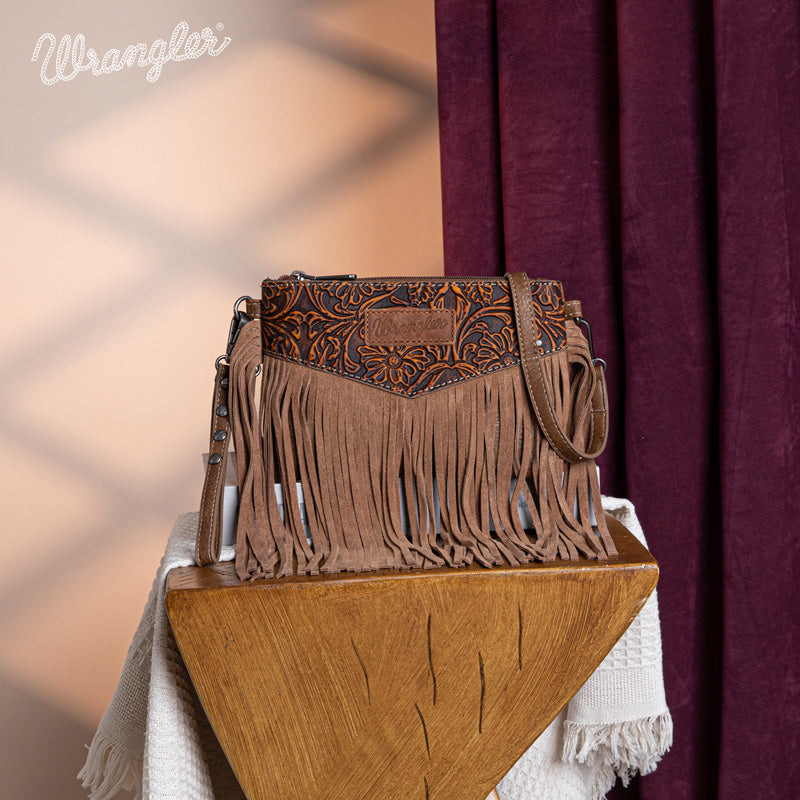 Wrangler Vintage Floral Tooled Collection Fringe Crossbody - Cowgirl Wear