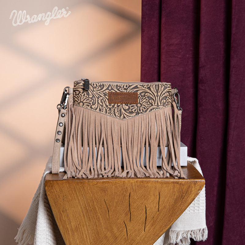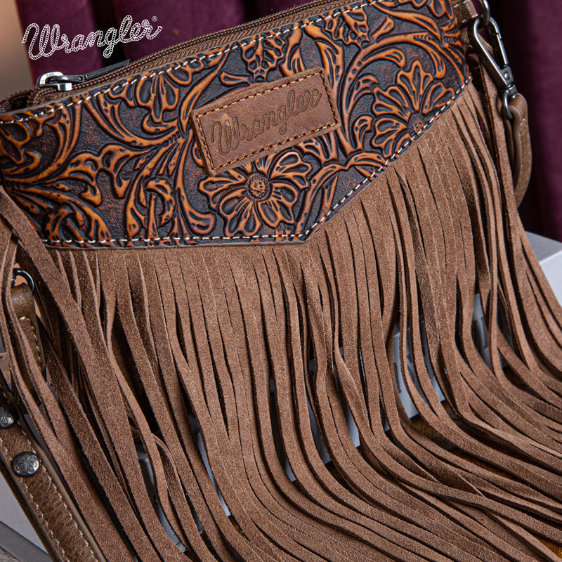 Wrangler Vintage Floral Tooled Collection Fringe Crossbody