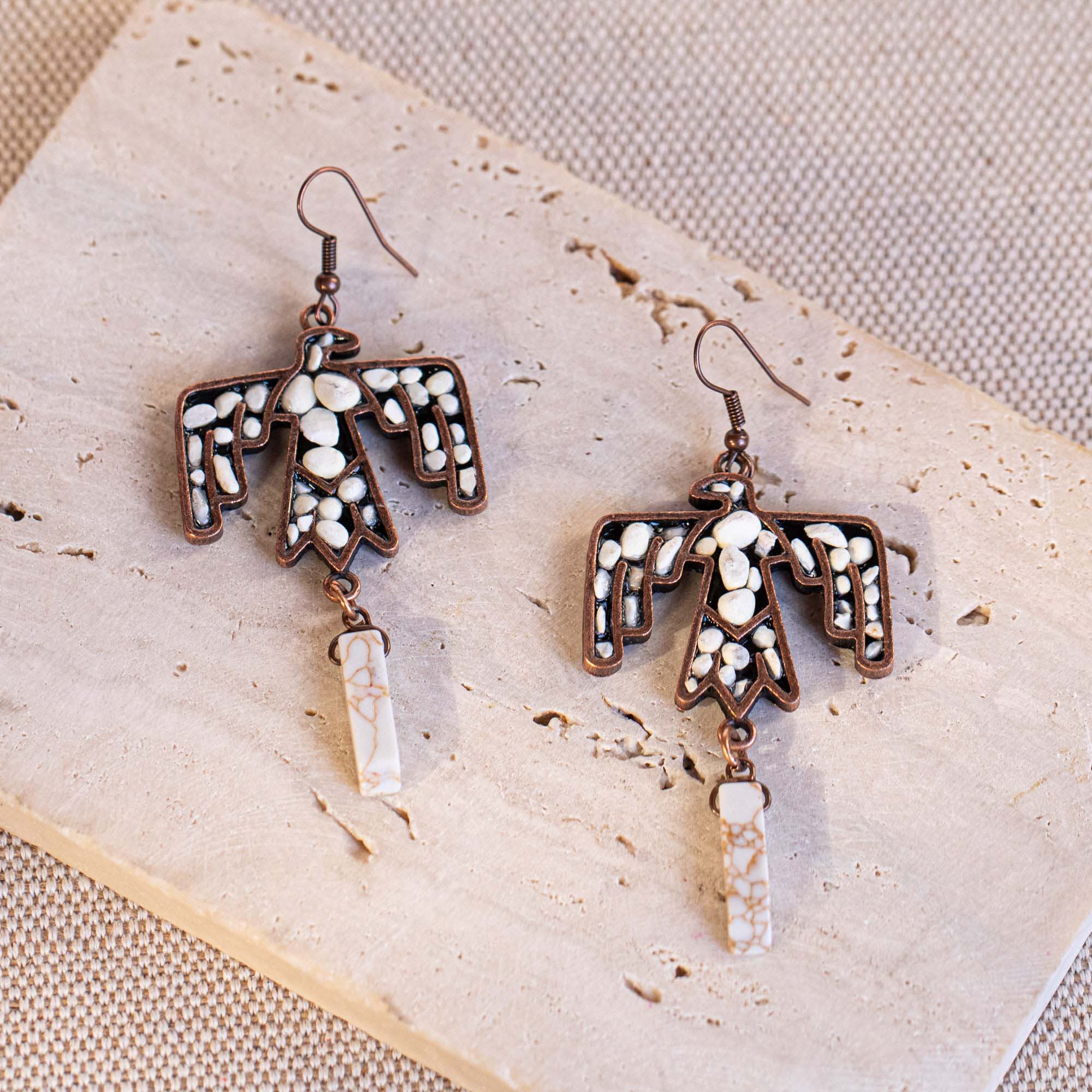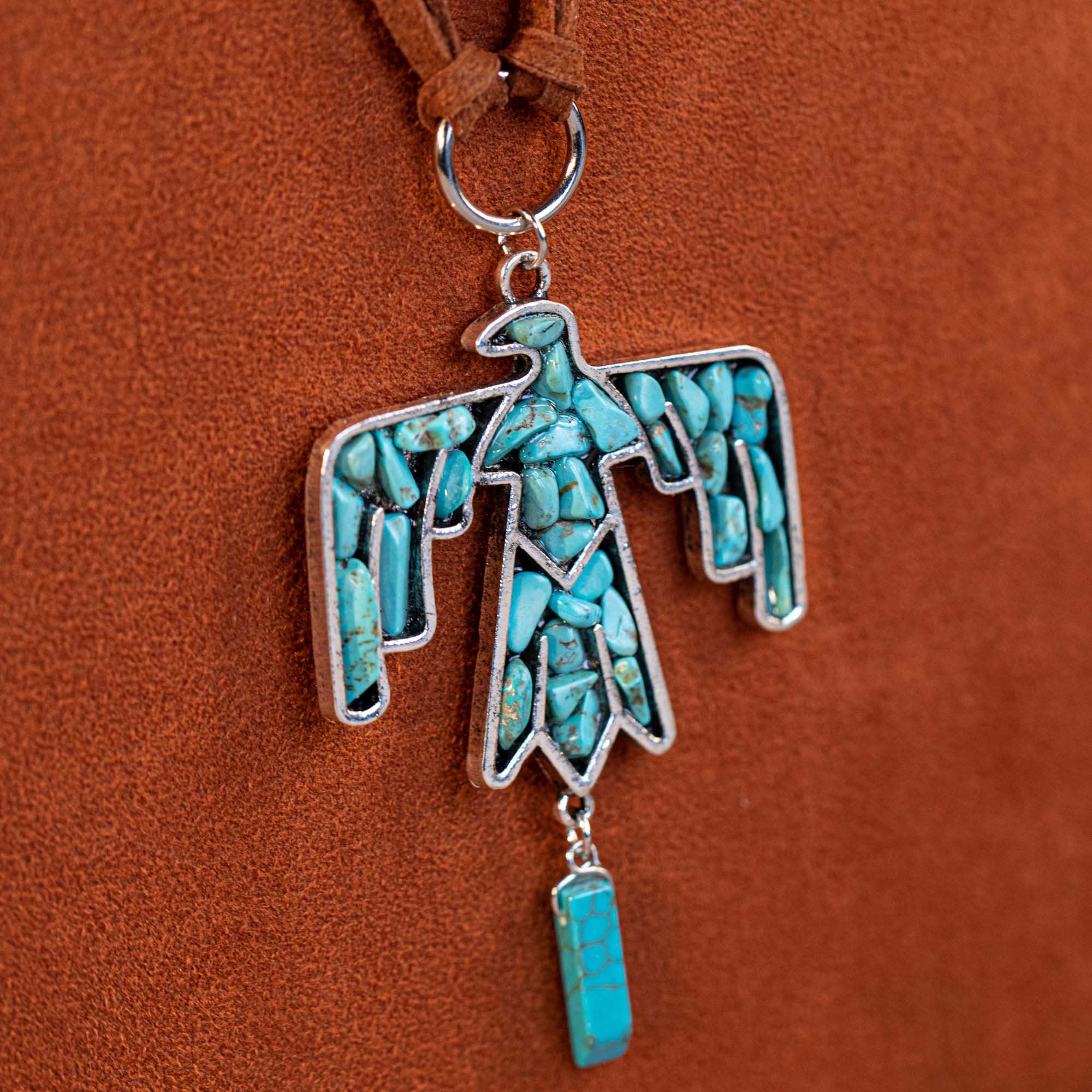 Leather necklace with color chip inlay thunderbird pendant and Earrings Set