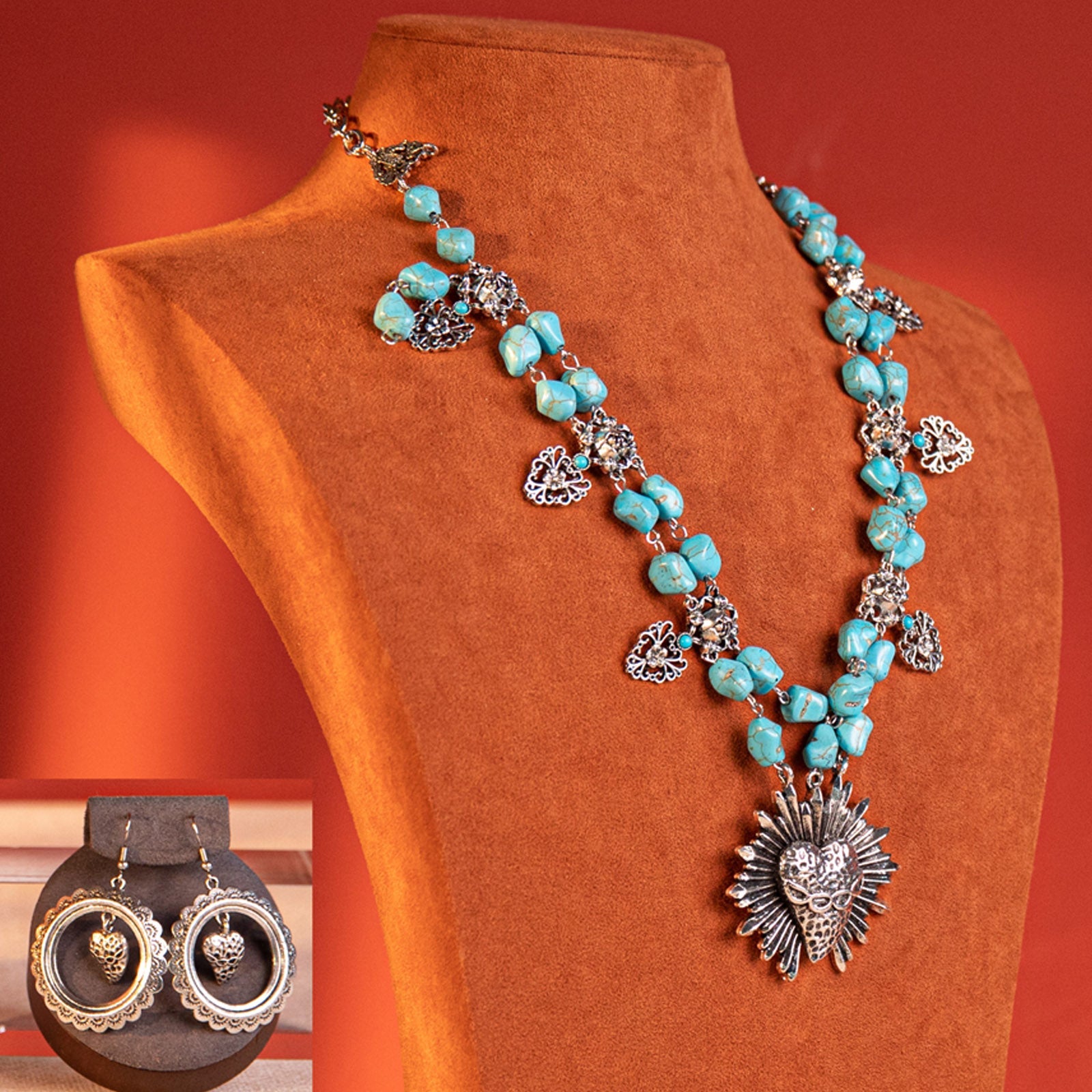 Nuggets Necklace Sunburst Heart Pendant Set with Earrings