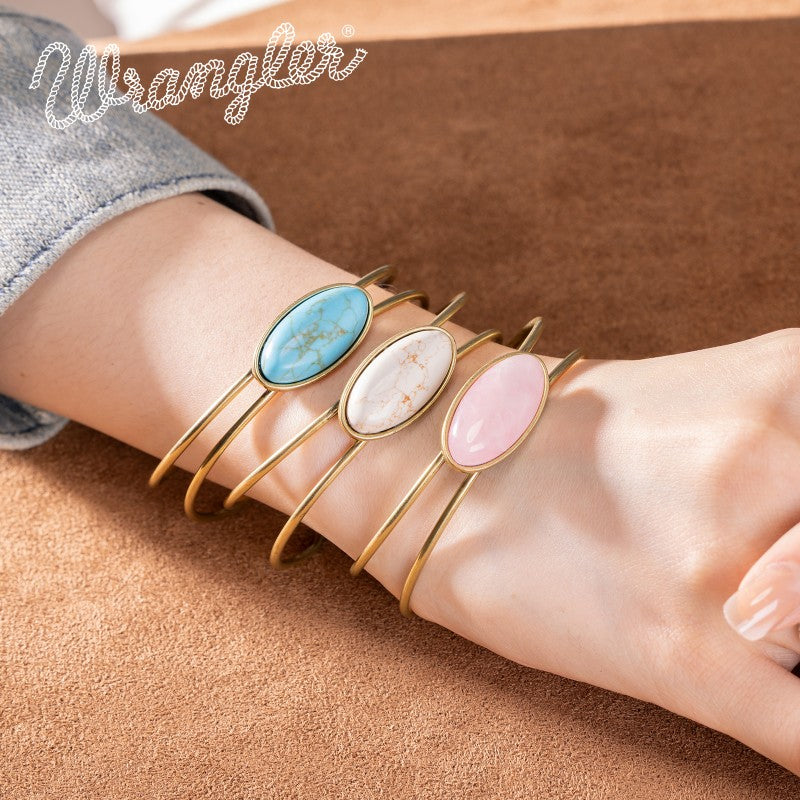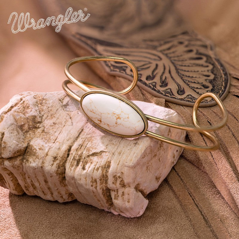 Wrangler Gold Western Natural Stone Cuff Bangle