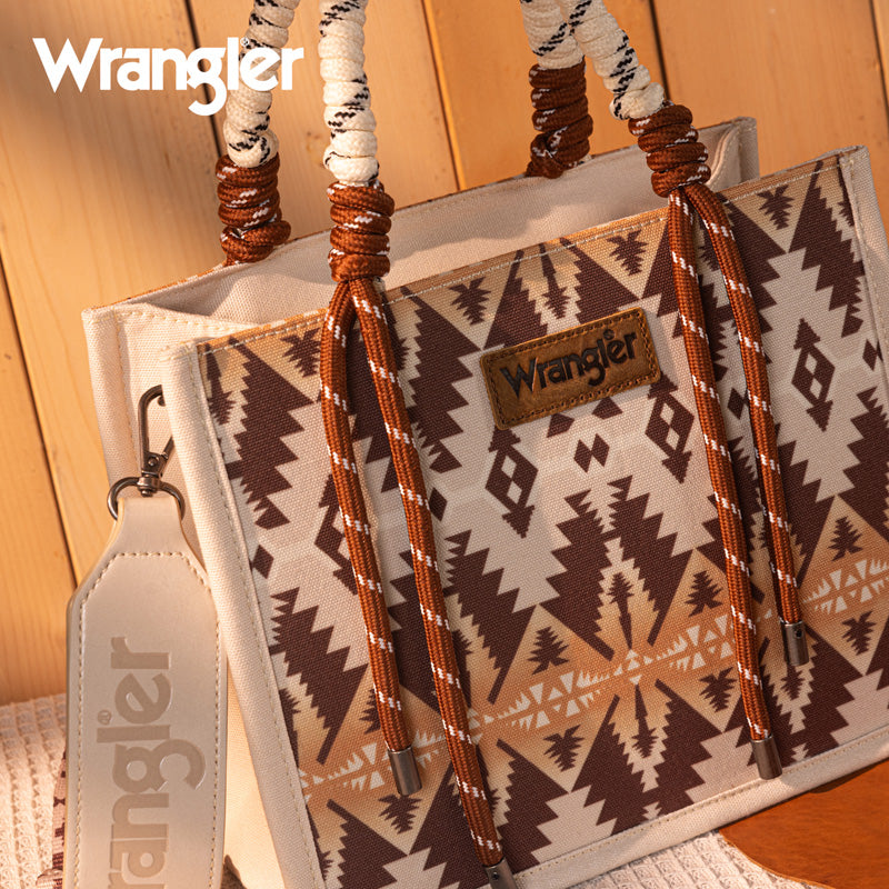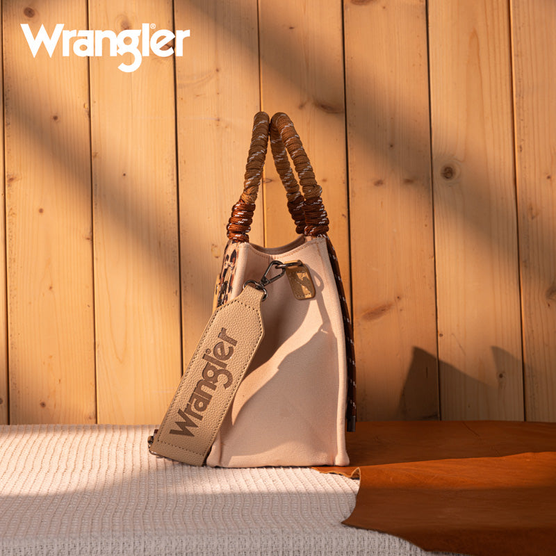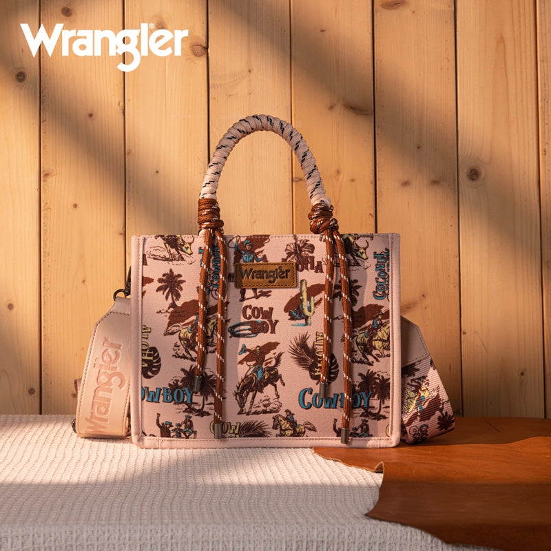 Canvas construction featuring an all-over cowboy/Aztec-inspired cactus and leopard print design, whipstitch details