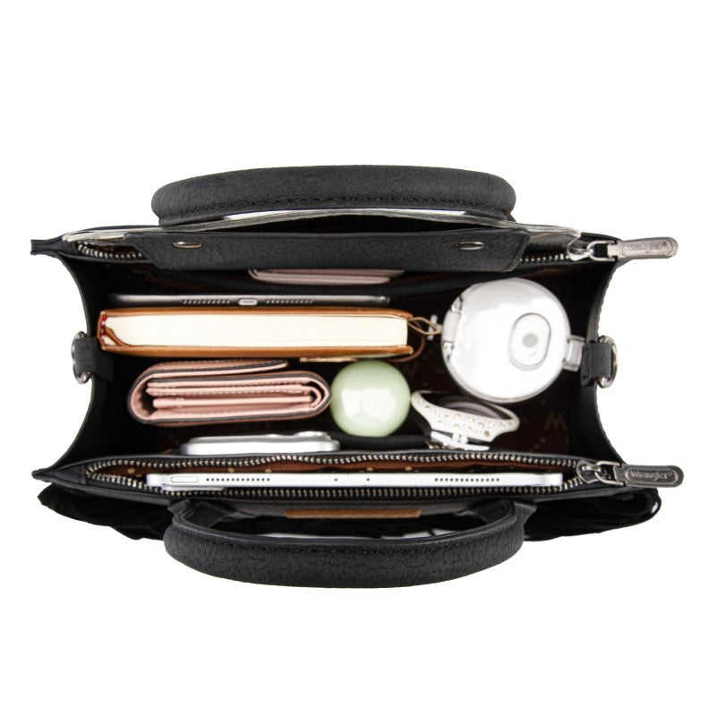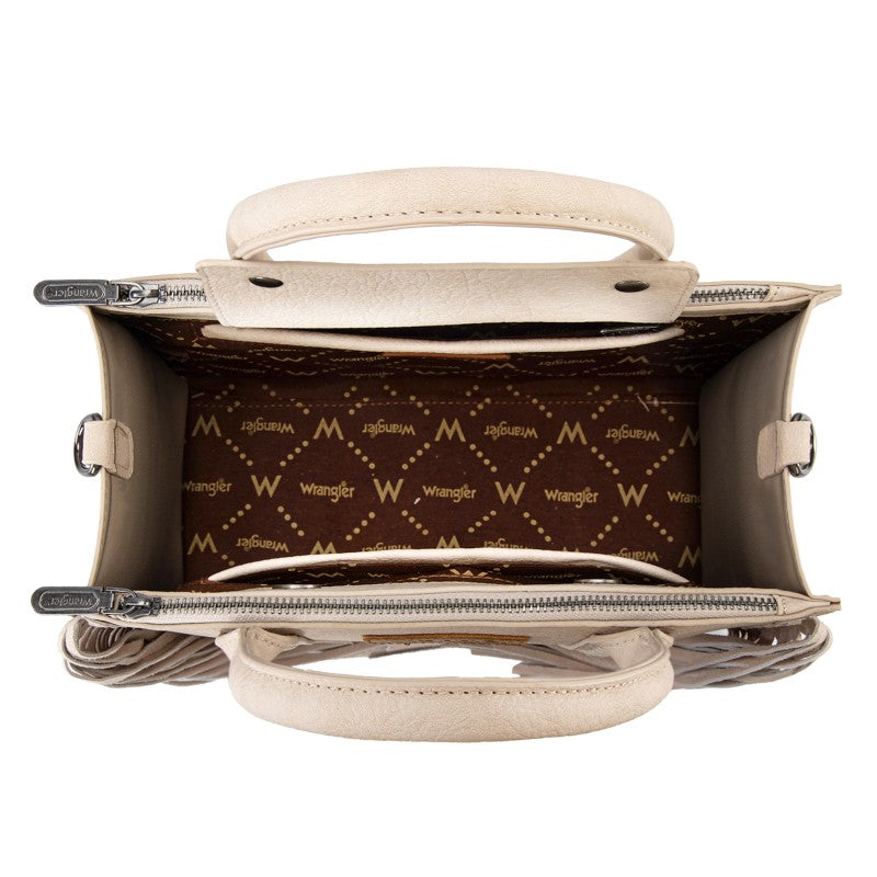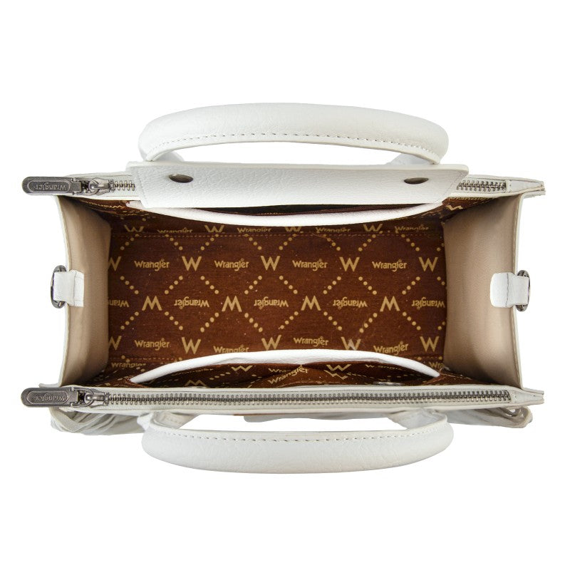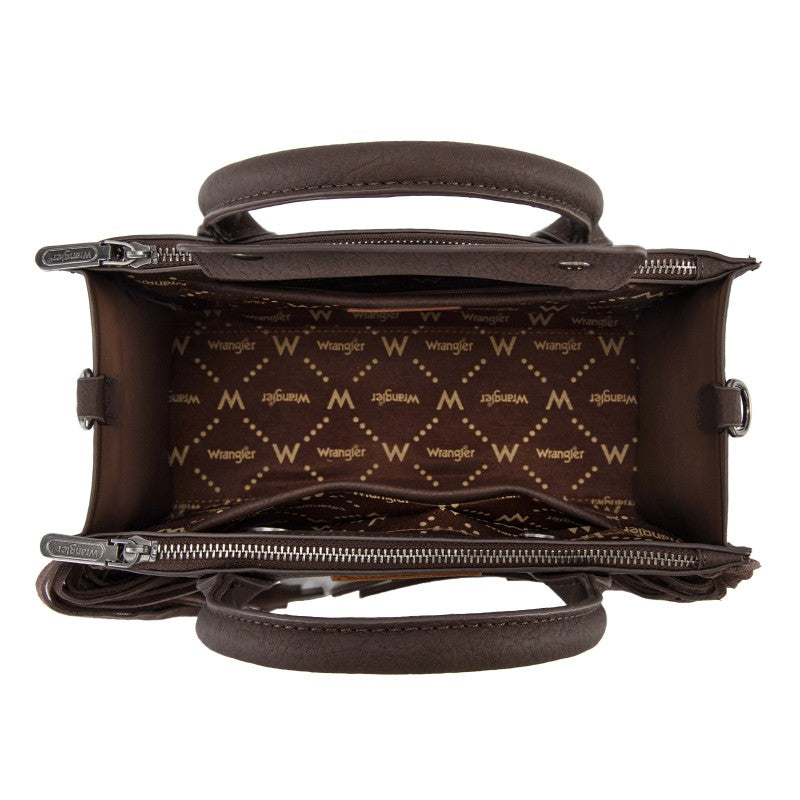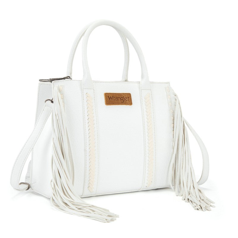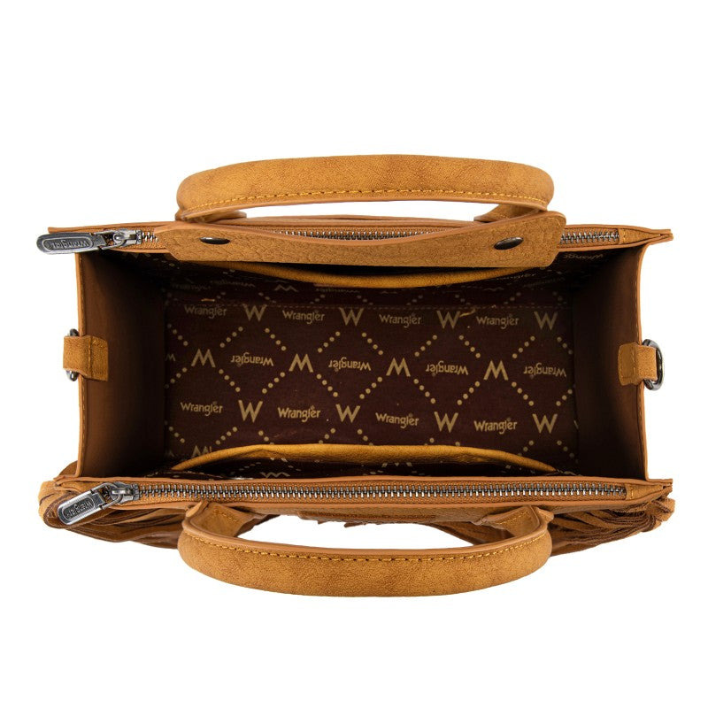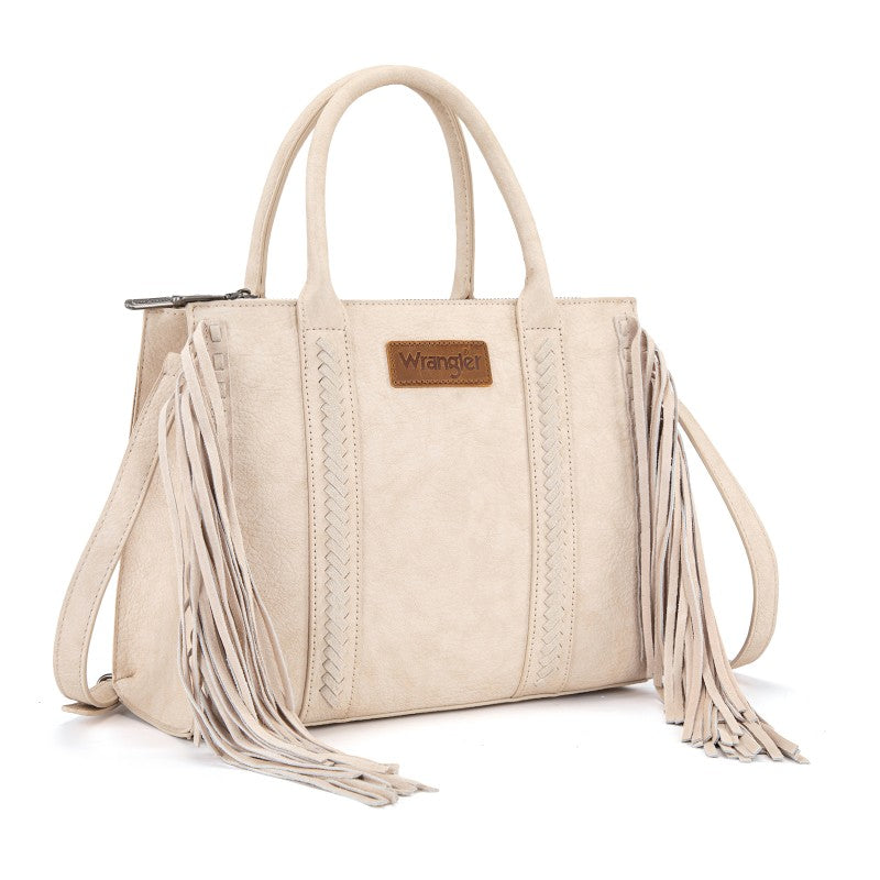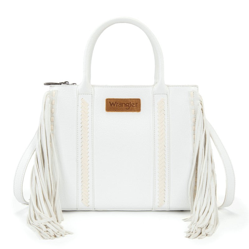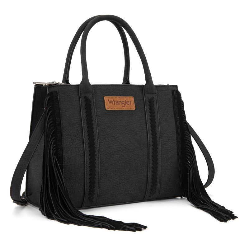 Discover the Wrangler Western Braided Fringe Tote Bag, designed to capture authentic western style with everyday functionality. This structured tote bag features a vintage-inspired PU exterior, signature braided panel detailing, and statement fringe accents along both sides, creating a bold yet balanced silhouette that transitions effortlessly from casual days to weekend outings.