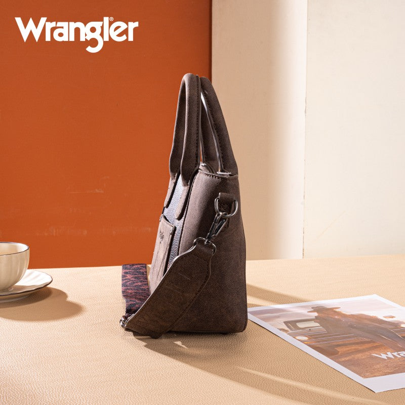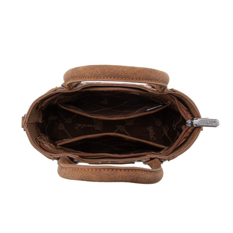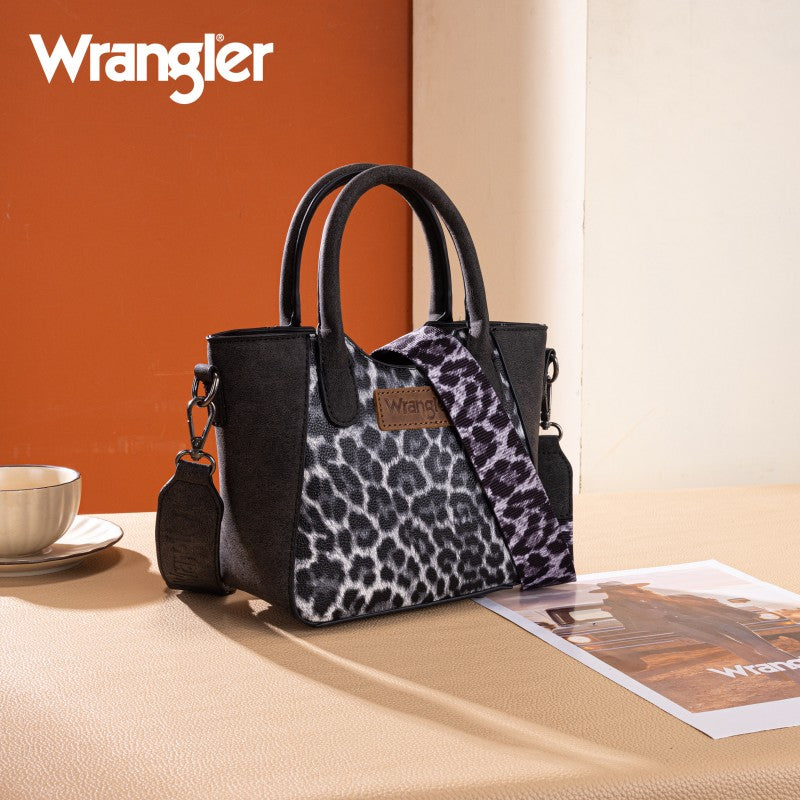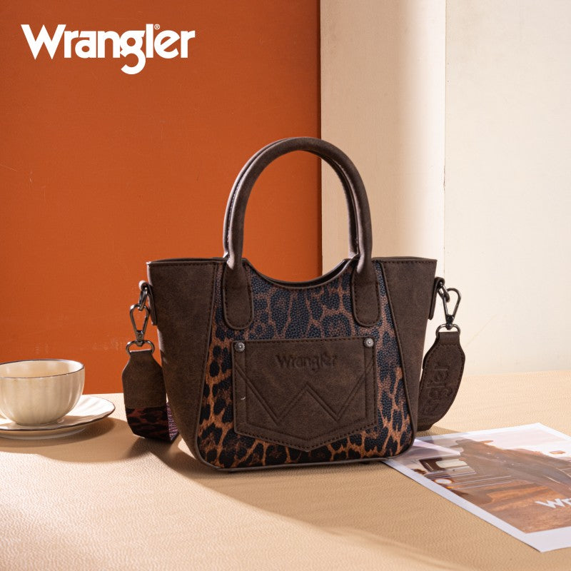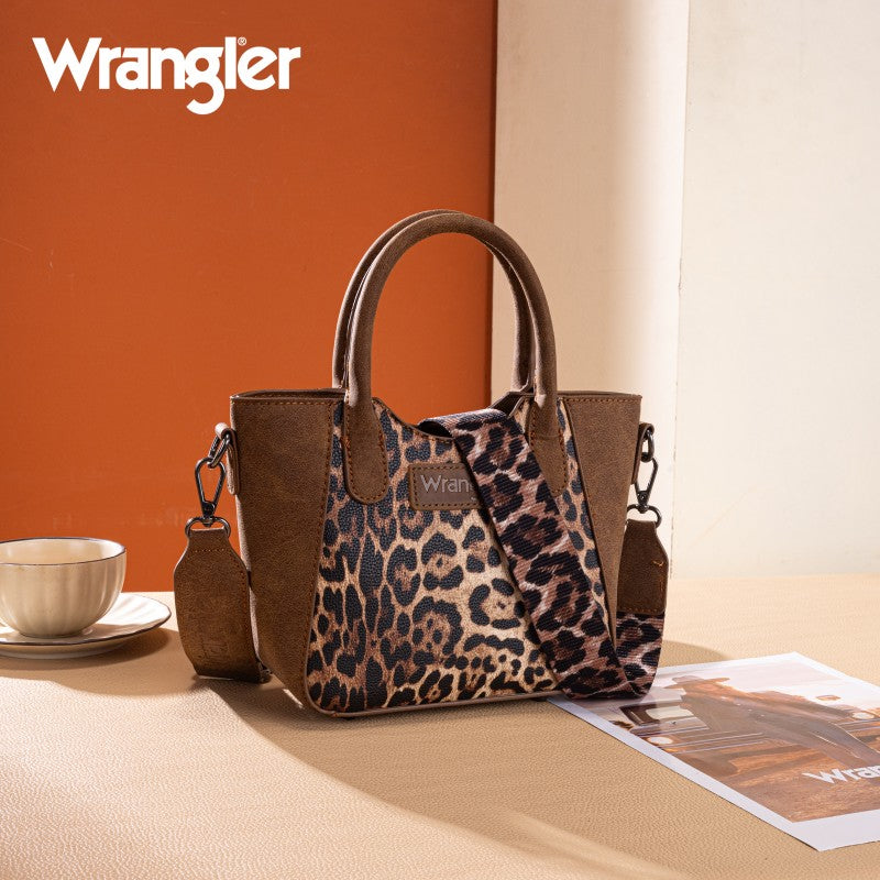 This Wrangler crossbody features a bold leopard print and a compact design, perfect for carrying your wallet, keys, and other daily essentials. With dual top handles and a detachable strap for versatile carrying, this women’s leopard purse combines Western flair with everyday practicality